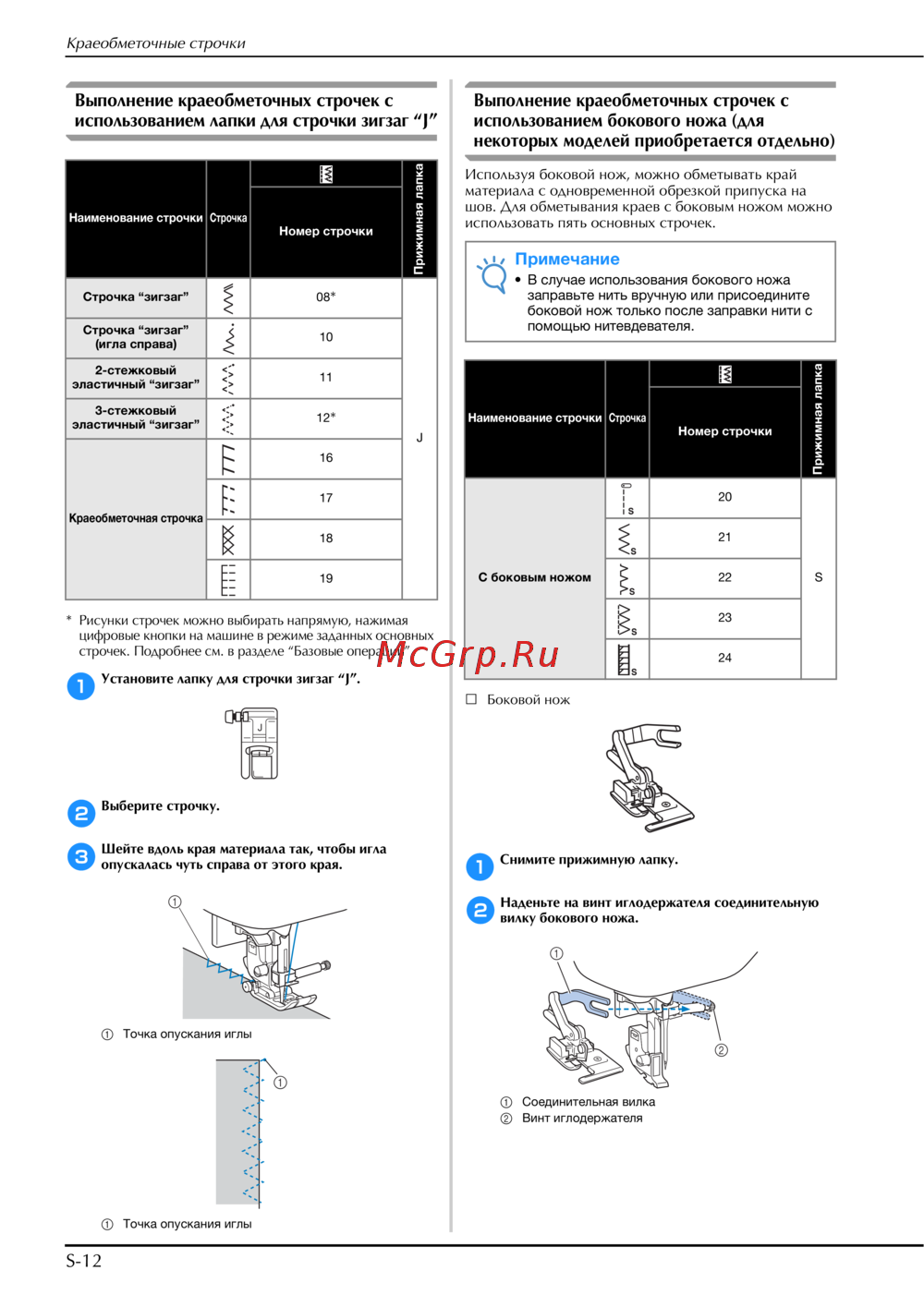 Узнайте, как правильно выполнять краеобметочные строчки с помощью лапки для зигзага и бокового ножа. Подробные инструкции и советы по выбору строчек.