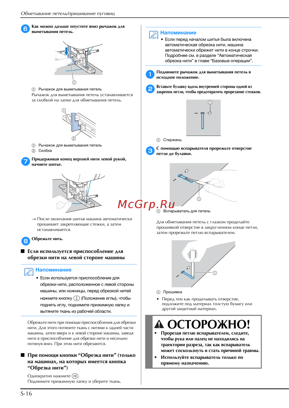- Убедитесь в правильной установке шпульного колпачка в противном случае возможна поломка иглы p.106