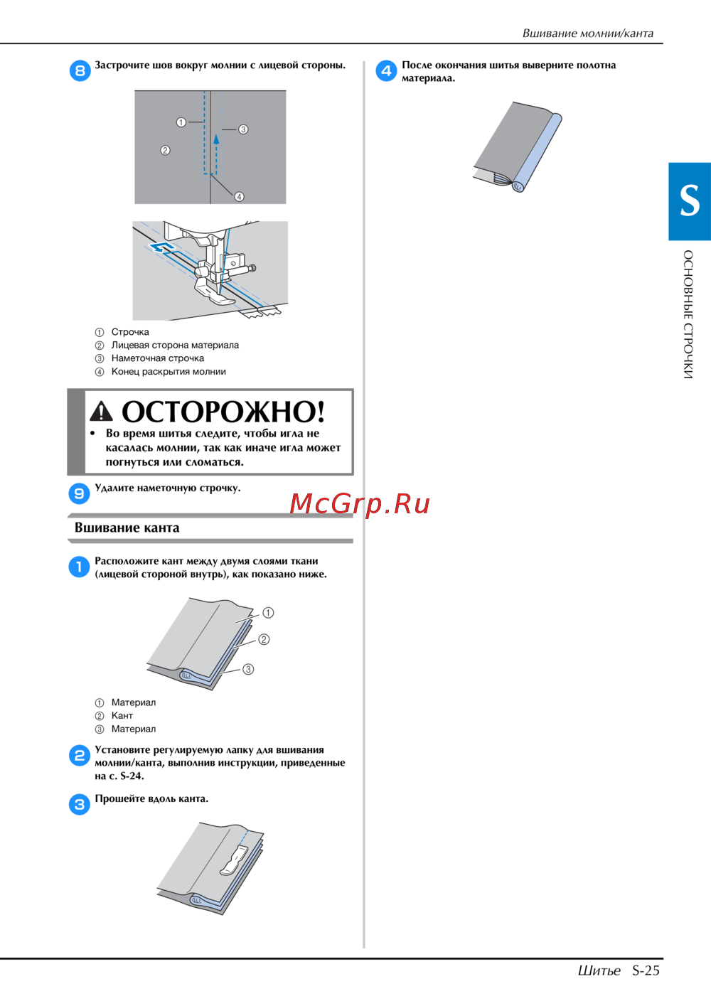 Brother INNOV-IS F410 — техника вшивания молнии и канта в шитье [79/128]