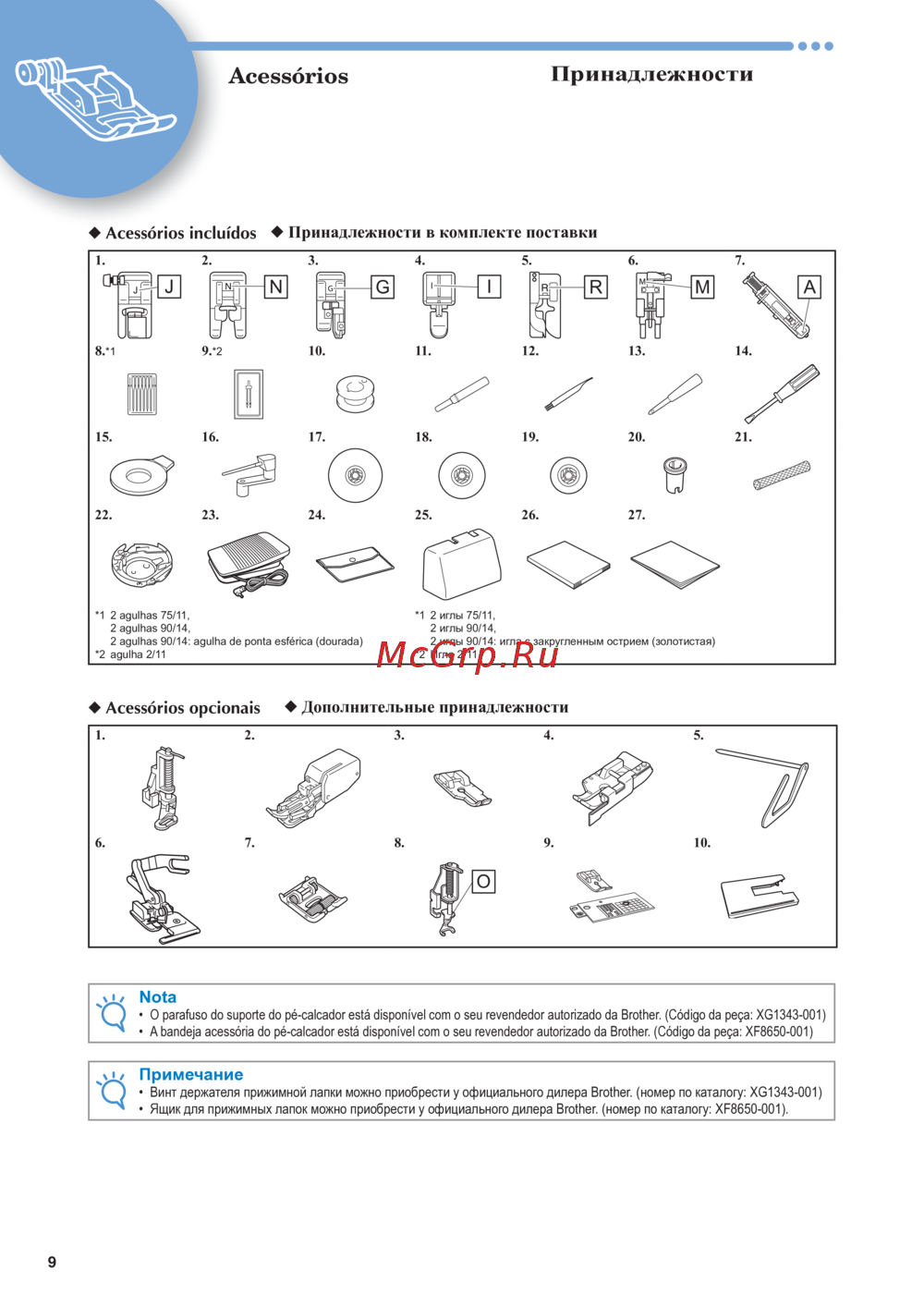 - Acessórios incluídos принадлежности в комплекте поставки p.10