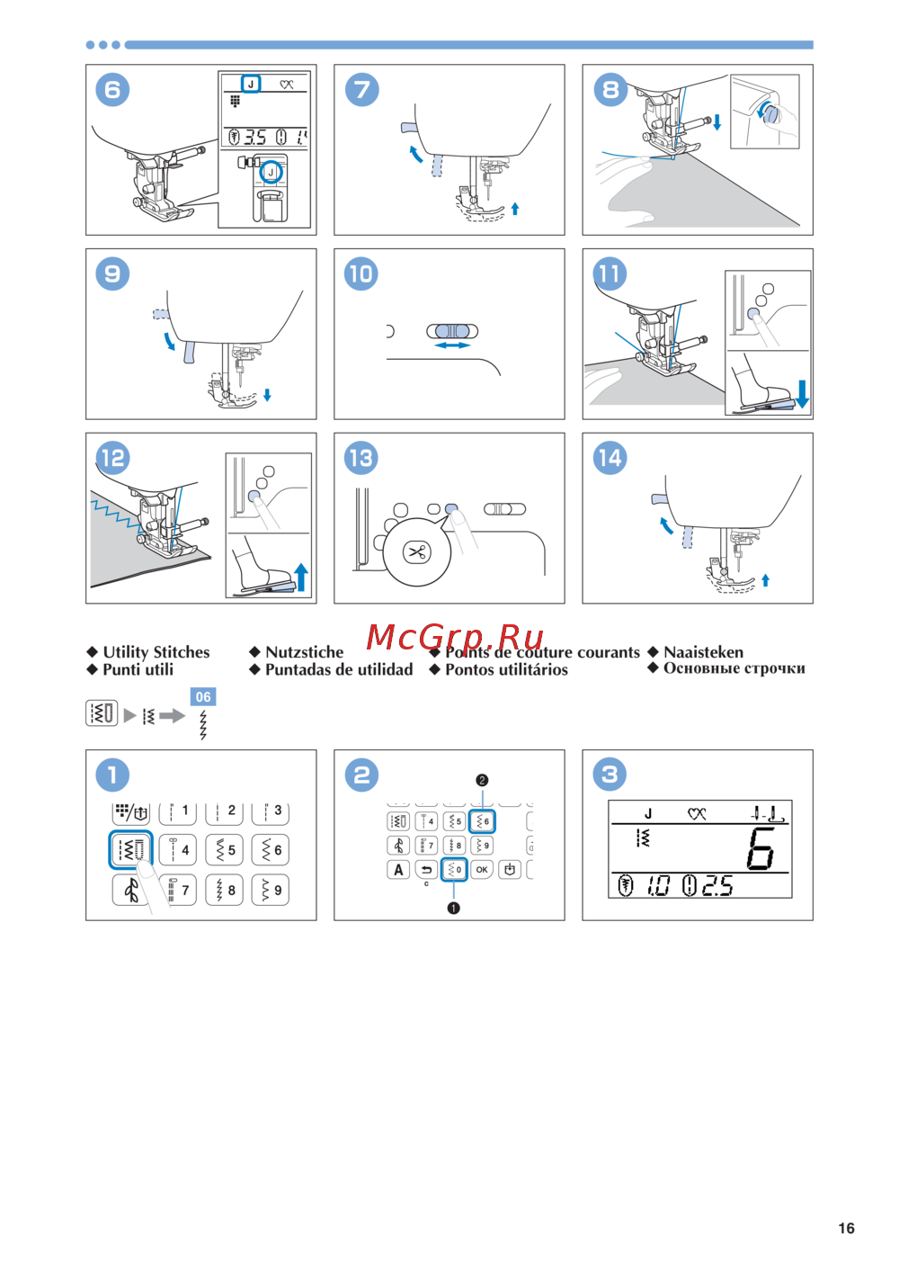 - Намотка установка шпульки 1 заправка верхней нити 3 выбор швейных строчек 5 p.3