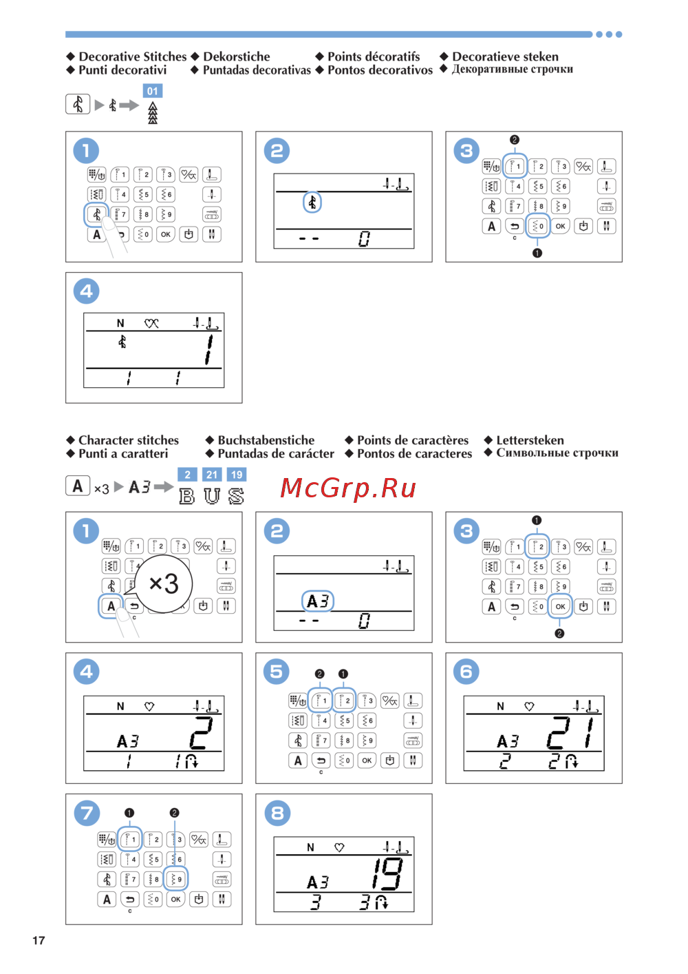 - Selecting and sewing patterns auswählen und nähen von stichen sélection et couture de motifs steken selecteren en naaien selezione e cucitura di motivi seleccionar y coser patrones seleção e costura de padrões p.16