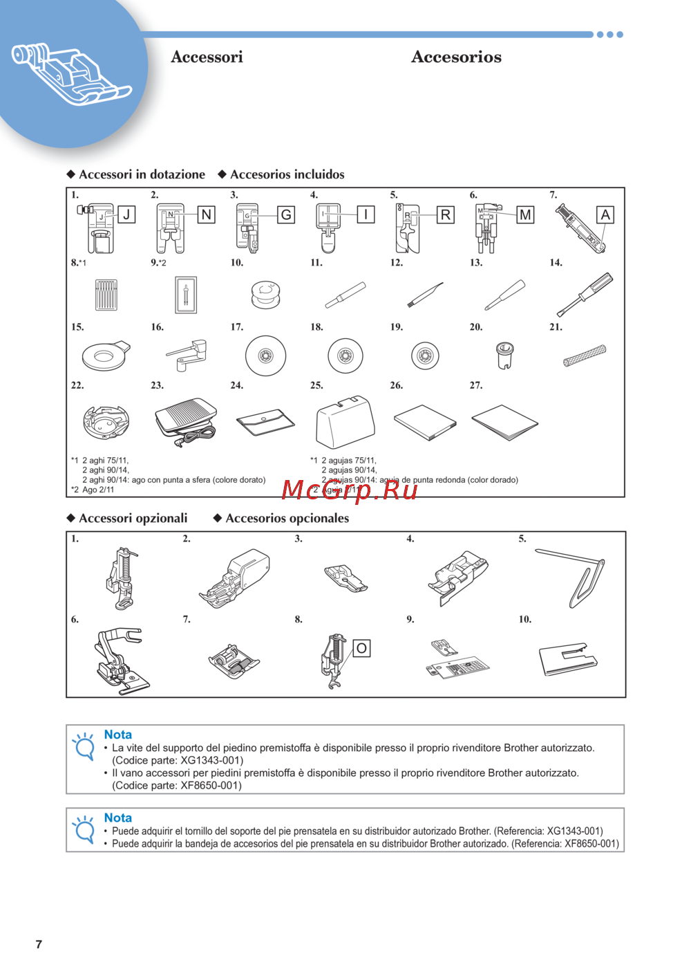 Il vano accessori per piedini premistoffa è disponibile presso il proprio rivenditore Brother autorizzato. •