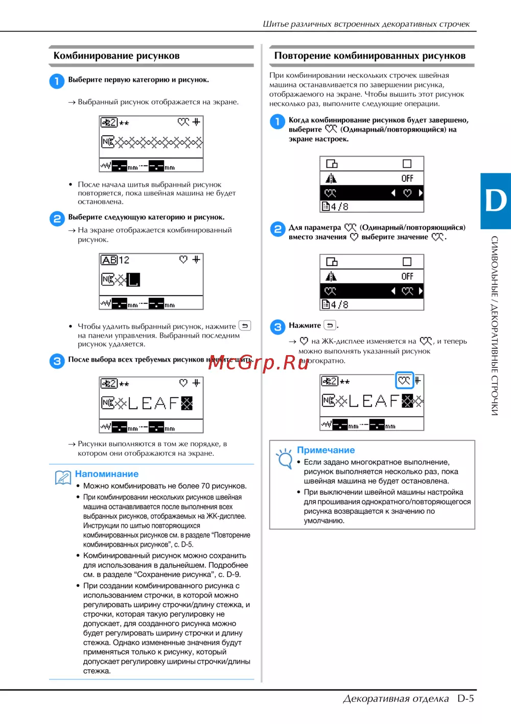 Brother INNOV-IS F460 — инструкции по шитью декоративных строчек и комбинированию рисунков [109/144]