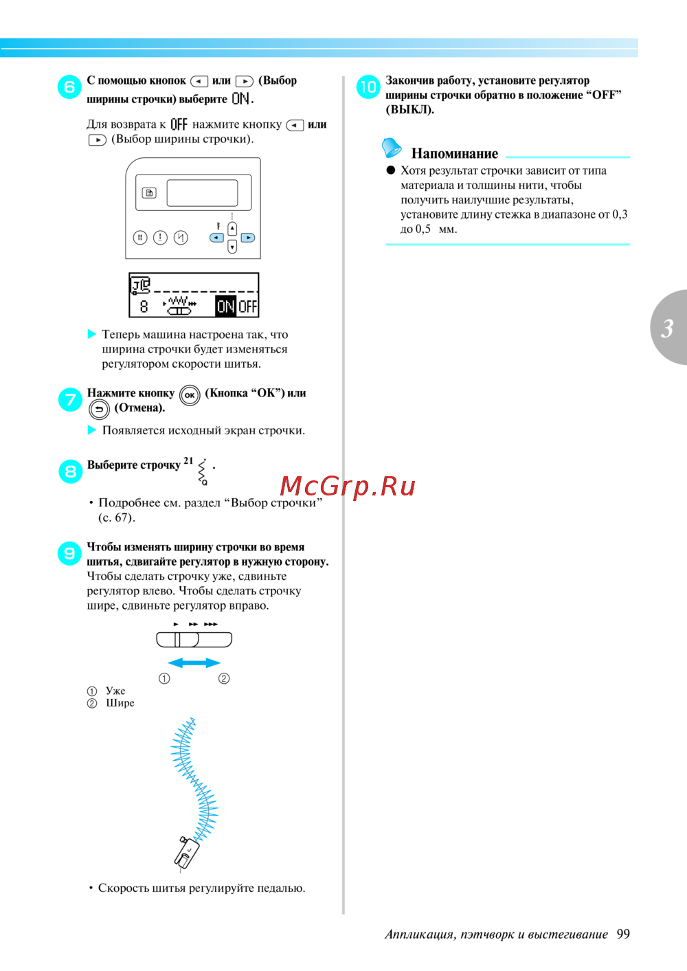 Brother ELITE 95E — настройка ширины строчки для аппликации и пэтчворка [101/152]