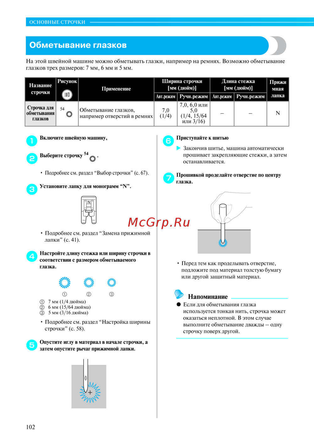 На этой швейной машине можно обметывать глазки, например на ремнях. Возможно обметывание