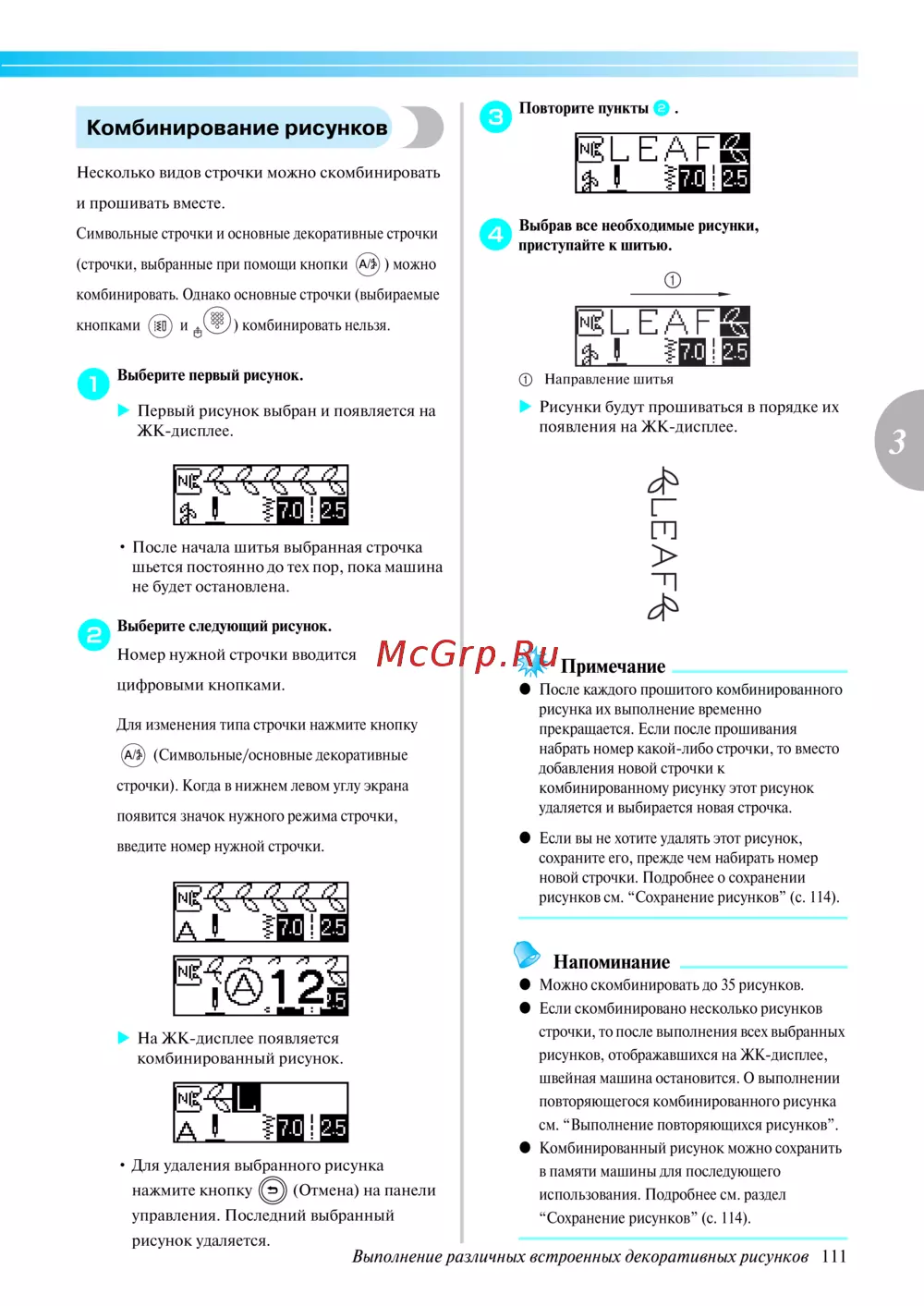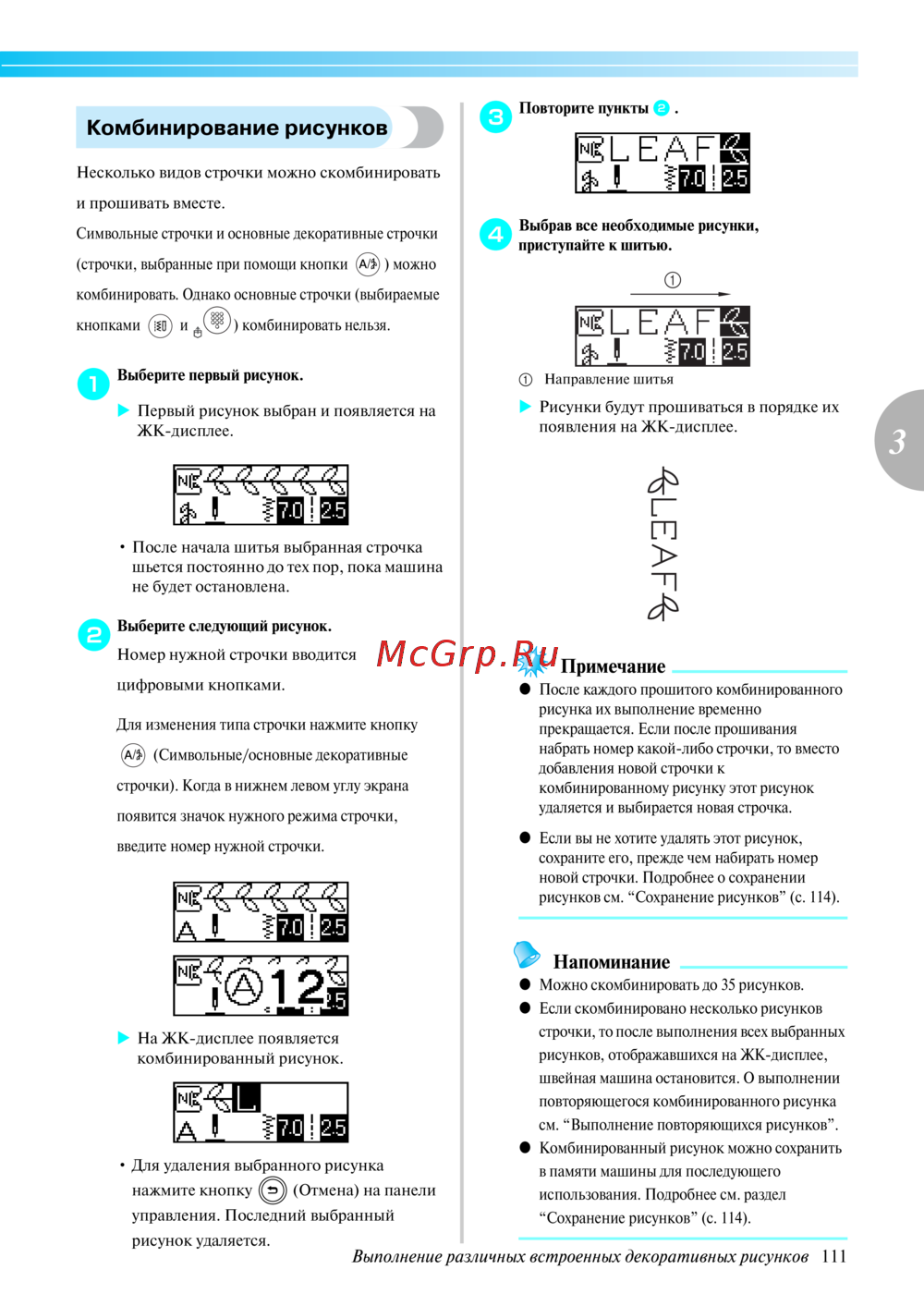 Brother ELITE 95E — комбинирование декоративных рисунков для шитья [113/152]