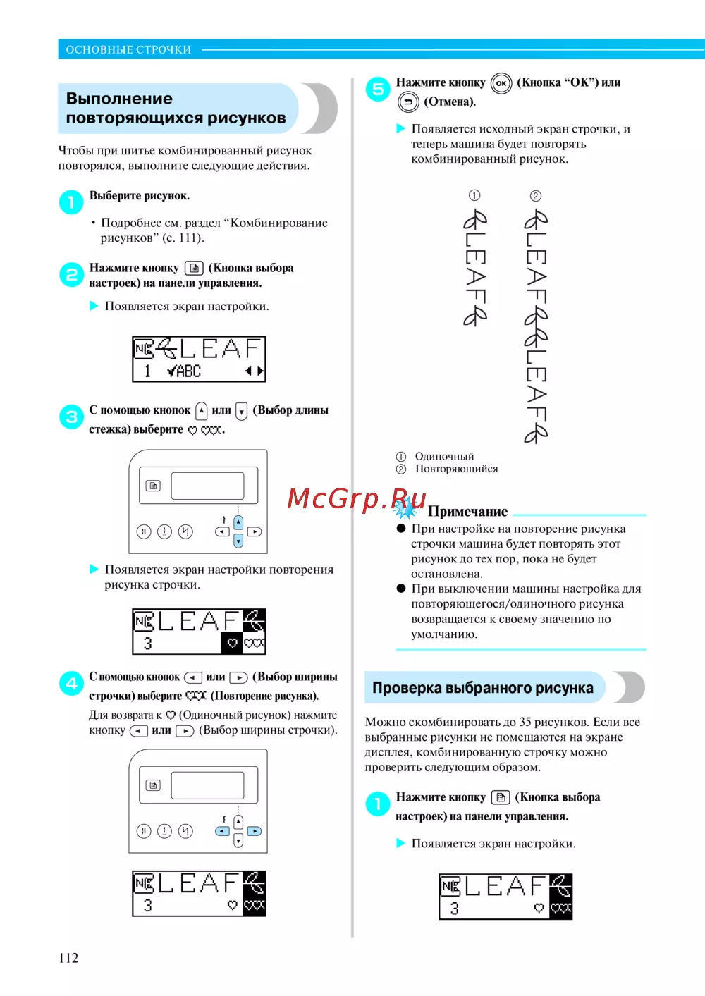 Узнайте, как легко настроить повторяющиеся рисунки на швейной машине. Следуйте простым шагам для комбинирования и проверки рисунков.