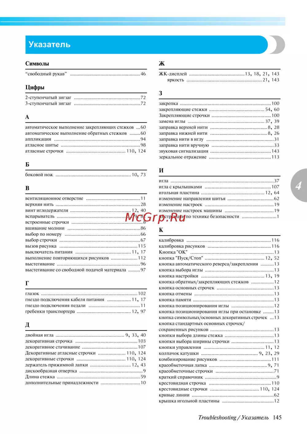 - Troubleshooting указатель 145 p.147