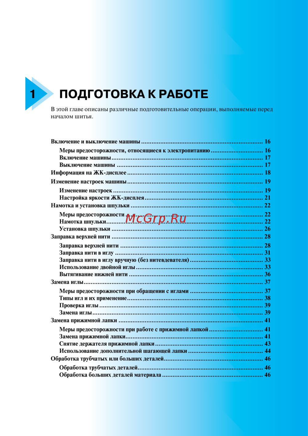 - Благодарим вас за покупку этой швейной машины перед началом эксплуатации швейной машины внимательно прочитайте раздел инструкции по технике безопасности с 1 а затем изучите настоящее руководство чтобы правильно использовать различные функции машины и выполнять различные операции храните руководство в легкодоступном месте чтобы при необходимости получить всю необходимую информацию p.10