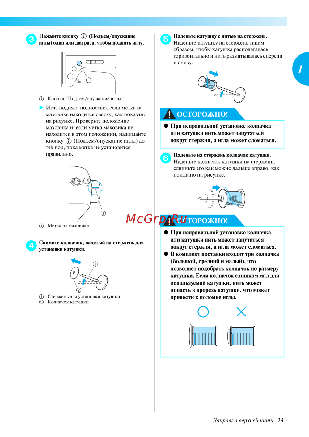 - Запрещается использовать шпульный колпачок если на нем имеются царапины это может привести к запутыванию верхней нити поломке иглы или ухудшению характеристик машины новый шпульный колпачок номер по каталогу xe7560 001 можно приобрести в ближайшем авторизованном сервисном центре убедитесь что шпульный колпачок вставлен правильно так как в противном случае игла может сломаться p.136