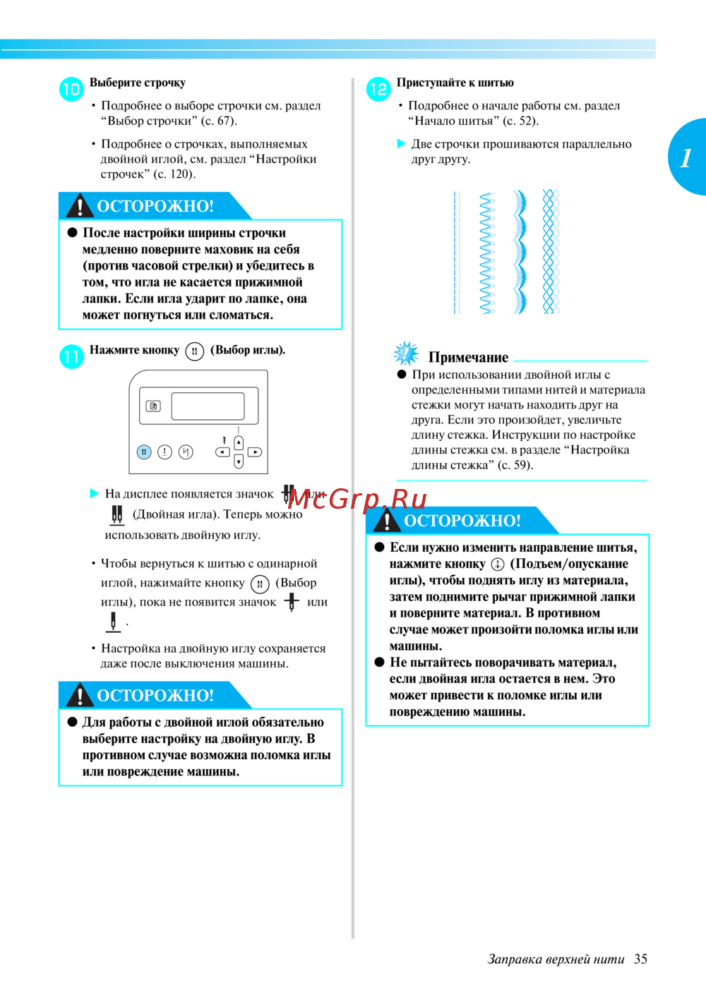 Узнайте, как правильно заправить верхнюю нить и использовать двойную иглу для шитья. Следуйте инструкциям для предотвращения поломок и достижения качественных результатов.