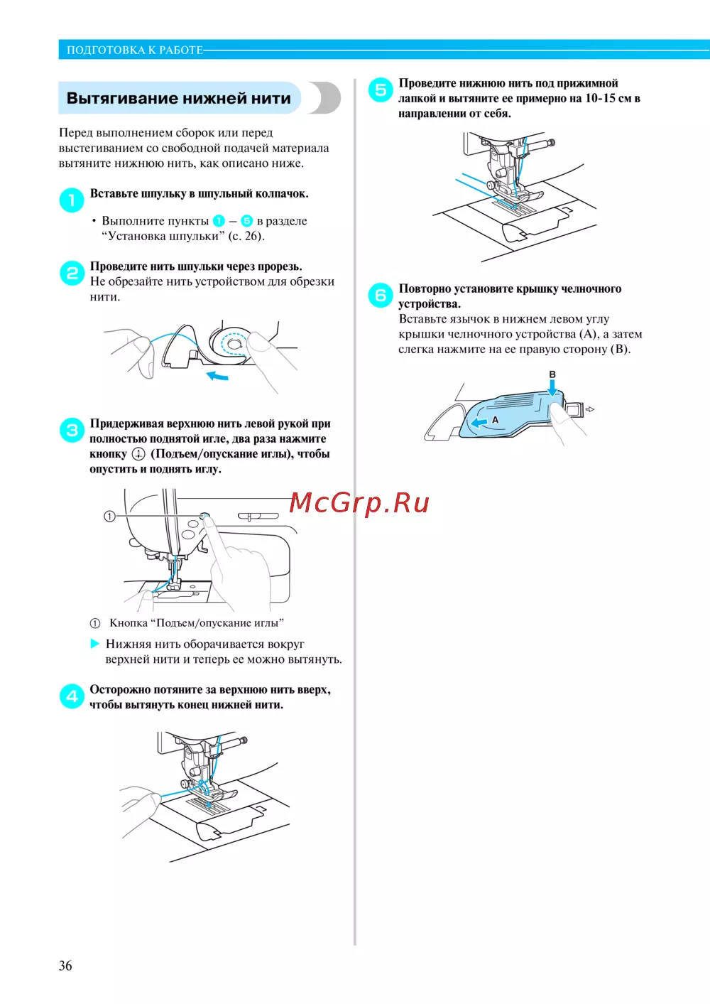 “Установка шпульки” (с. 26).