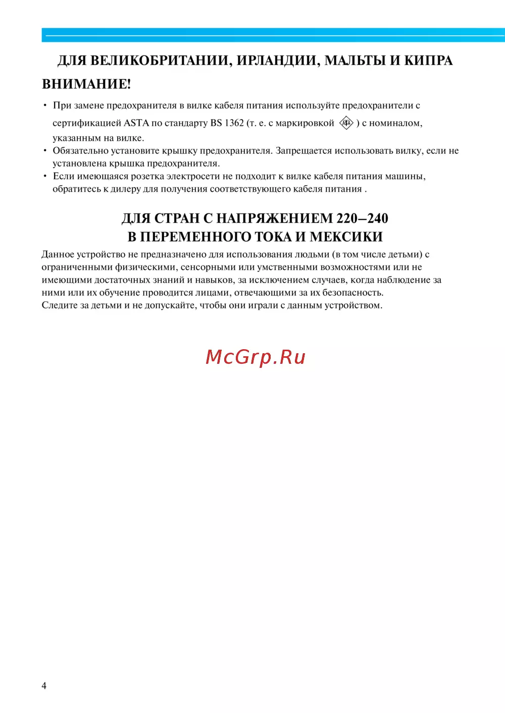 - Для стран с напряжением 220 240 в переменного тока и мексики p.6