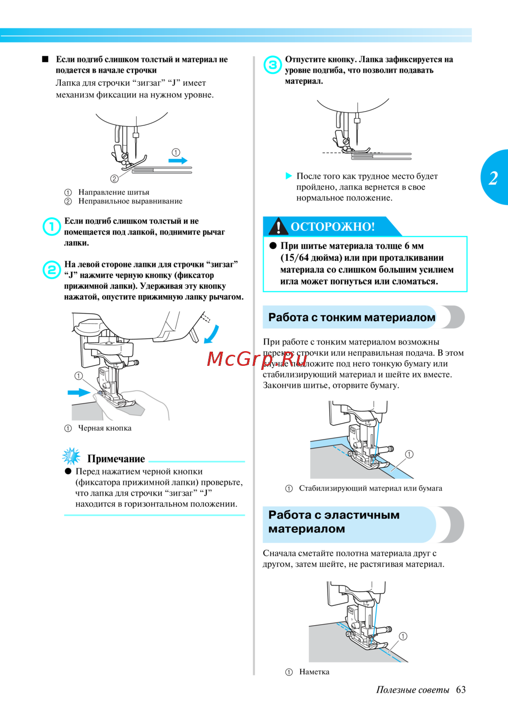 ■ Если подгиб слишком толстый и материал не