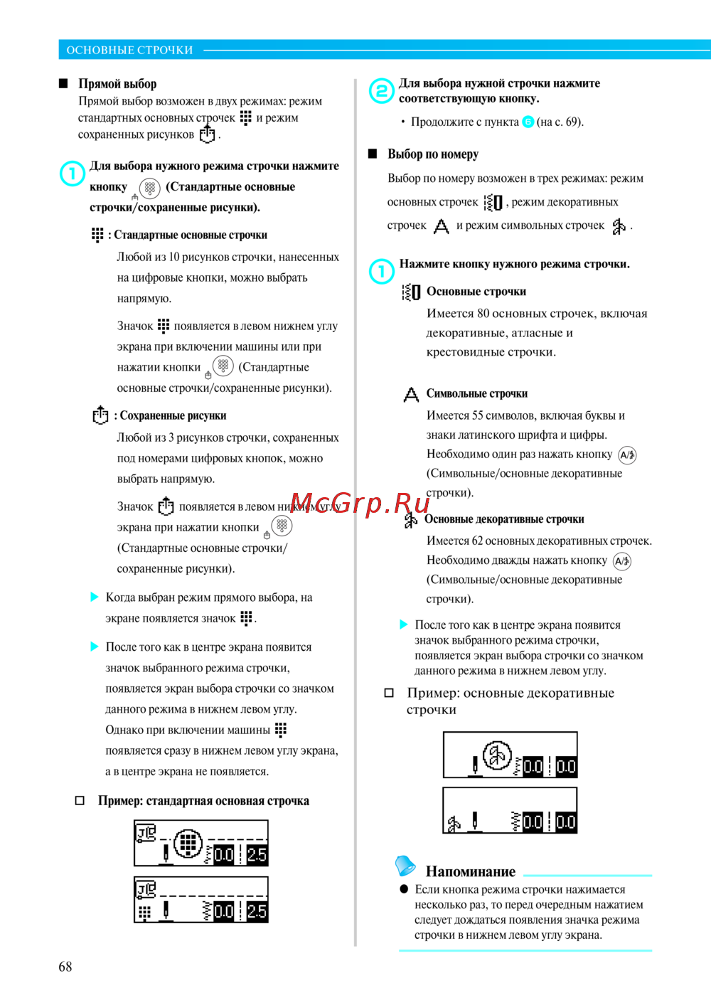 - Для переключения в режим основной декоративной строчки нажмите кнопку символьная p.127