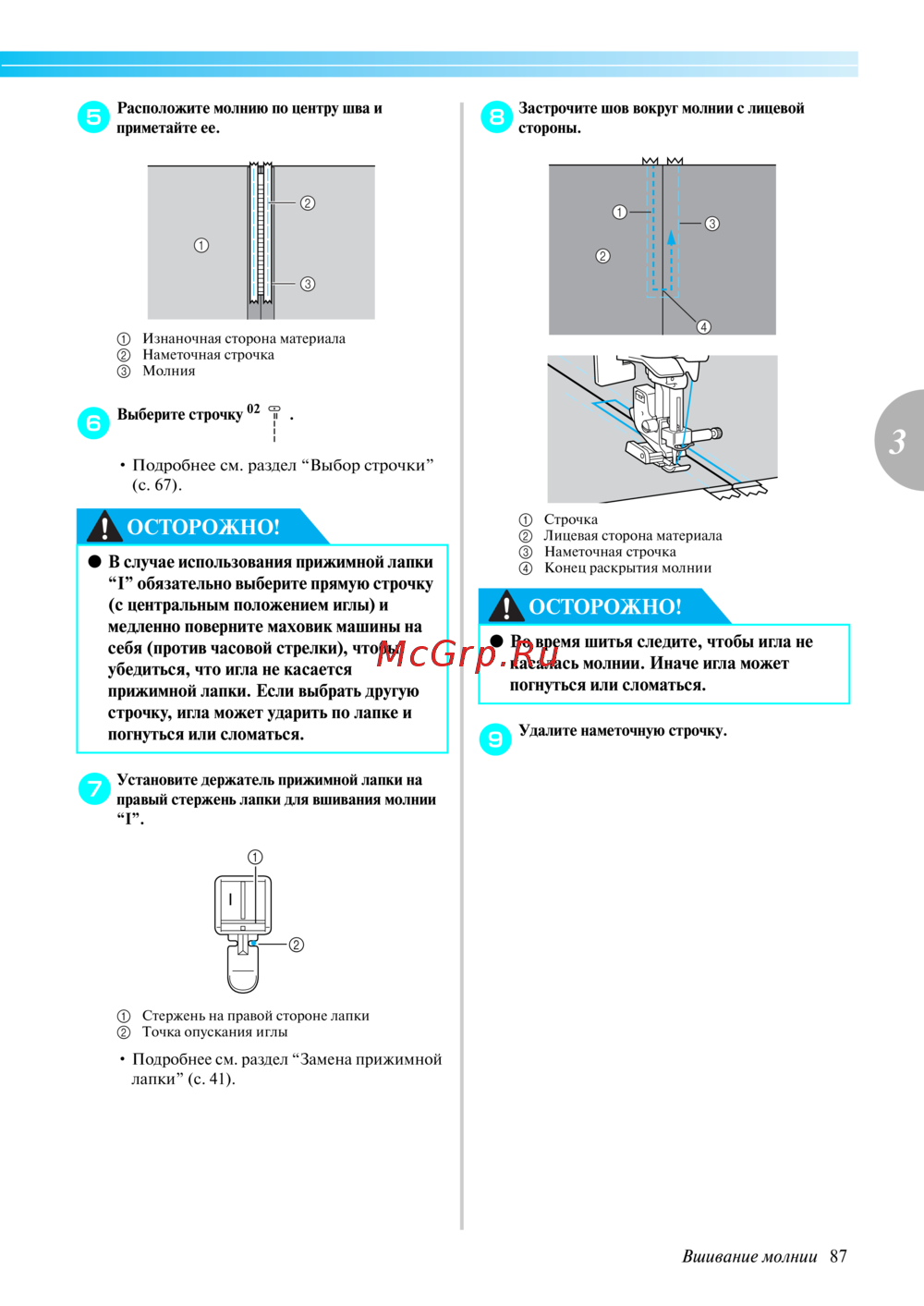 Brother ELITE 95E — инструкция по вшиванию молнии: пошаговое руководство [89/152]