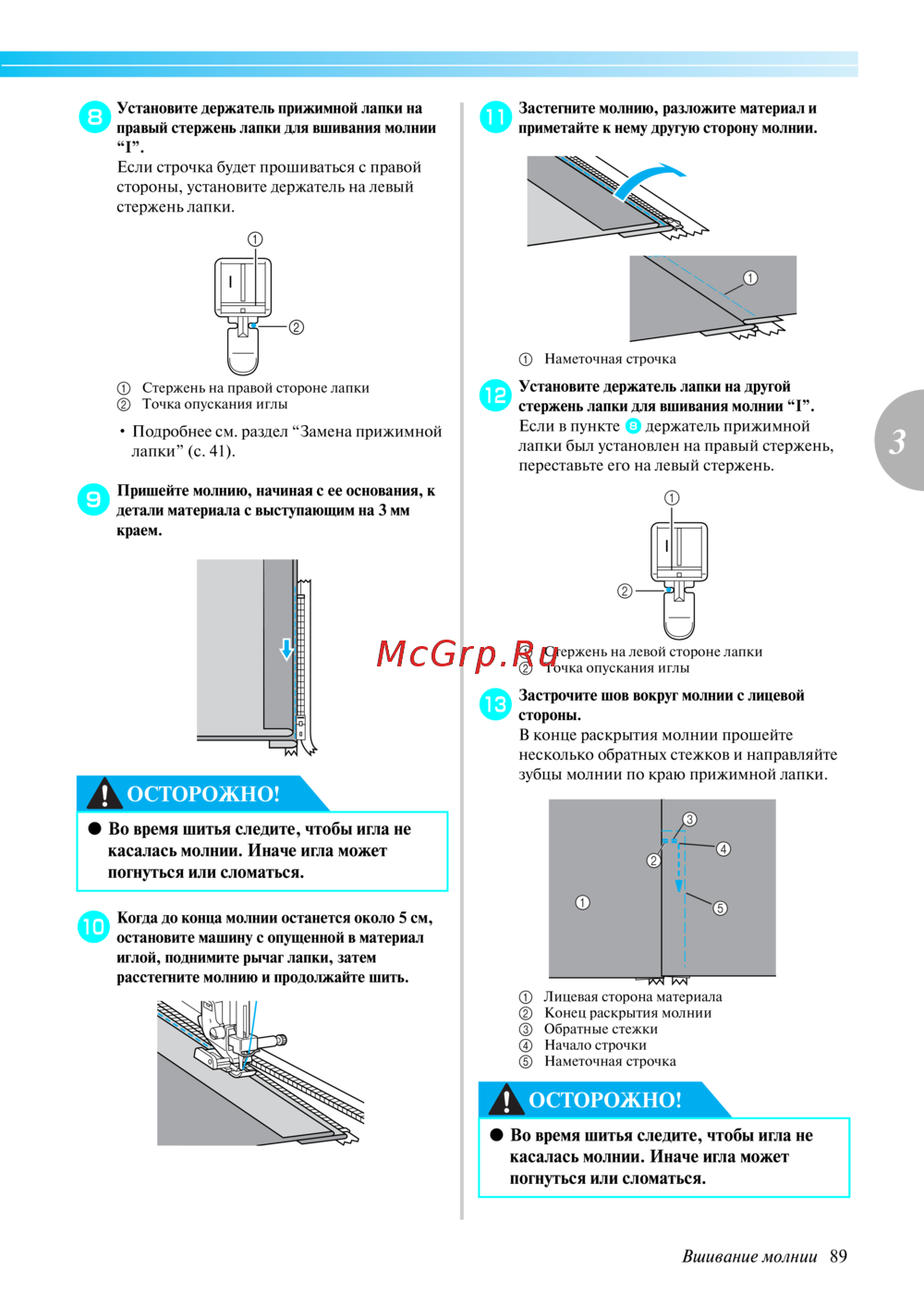 Brother ELITE 95E — инструкция по вшиванию молнии: пошаговое руководство [91/152]