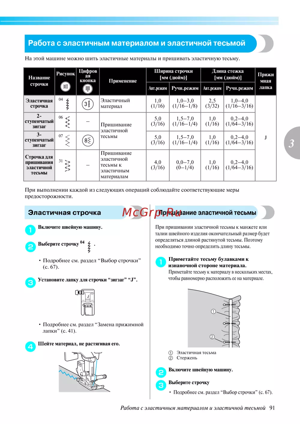Brother ELITE 95E — работа с эластичными материалами и тесьмой: советы и рекомендации [93/152]