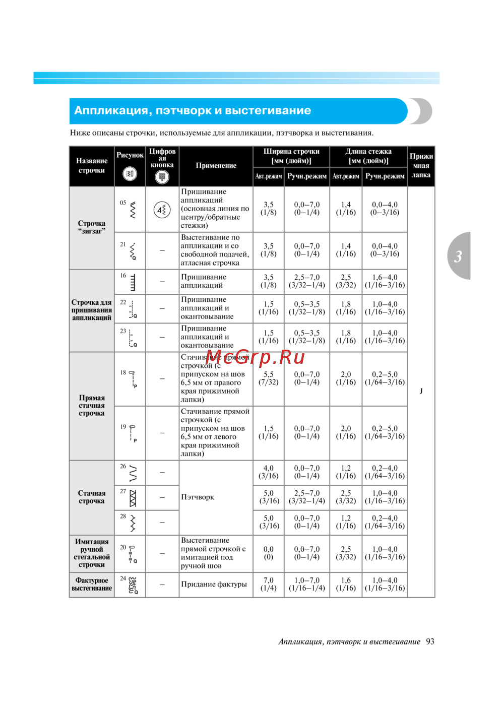 - Длина стежка мм дюйм p.125