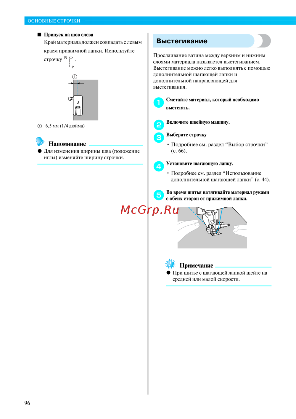 Узнайте основные техники шитья, включая выстегивание и настройку ширины шва. Подробные инструкции помогут вам легко освоить швейные навыки.