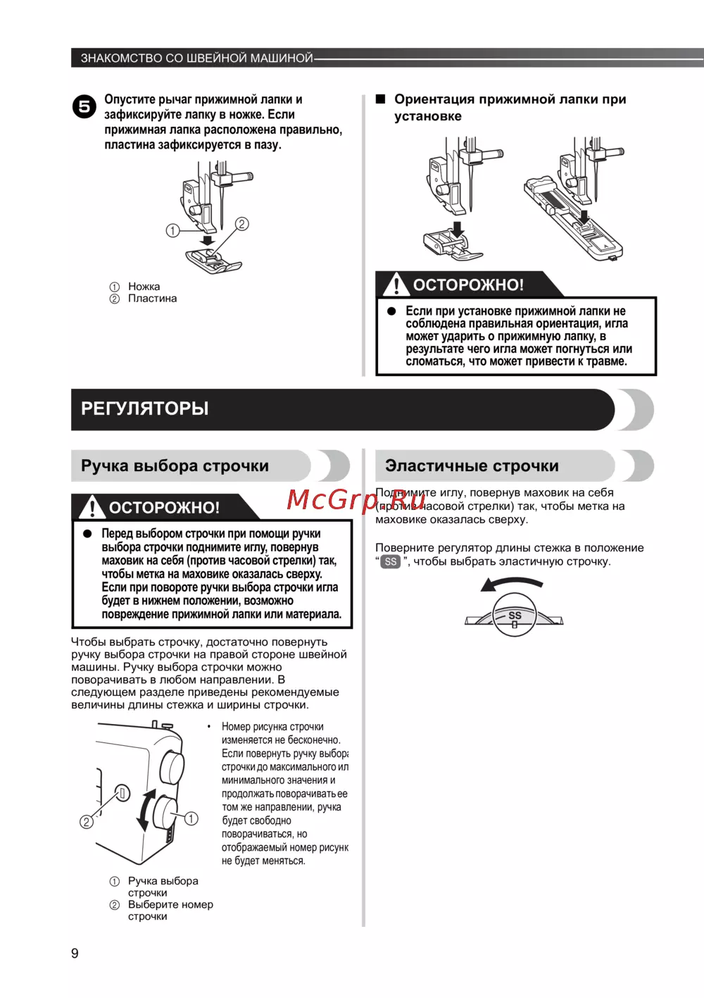 Узнайте, как правильно установить прижимную лапку и выбрать строчку на швейной машине. Следуйте рекомендациям для безопасной и эффективной работы.
