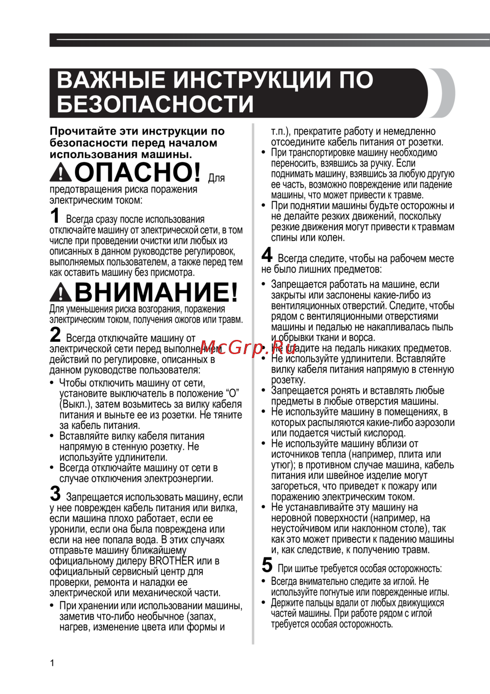 Brother ELITE 55 — инструкции по безопасности при использовании электрических машин [2/52]
