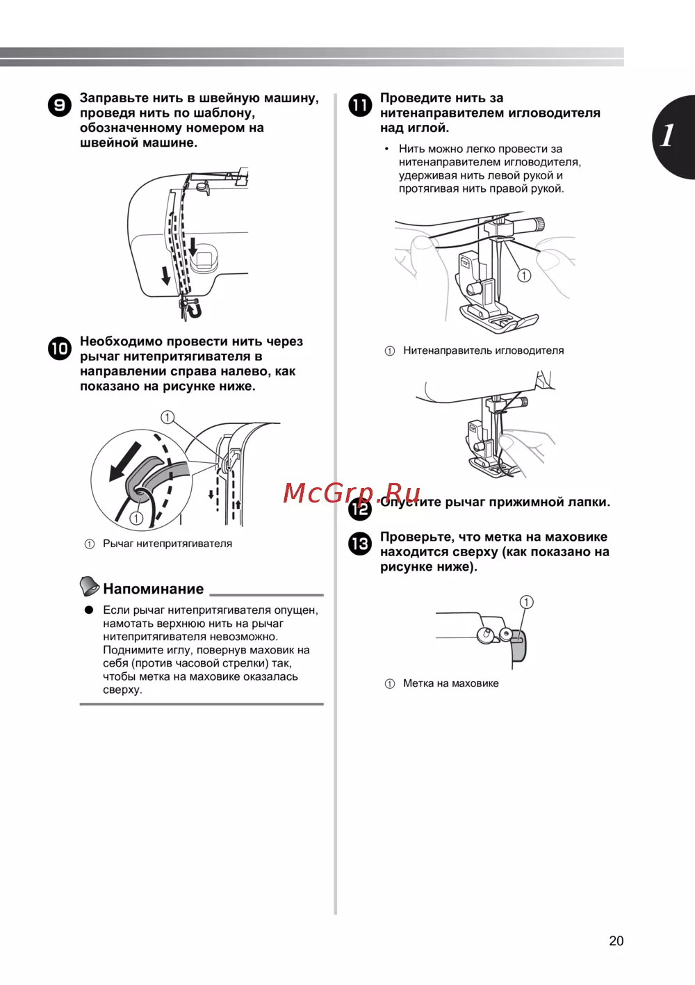 - Заправка нити в машину p.14