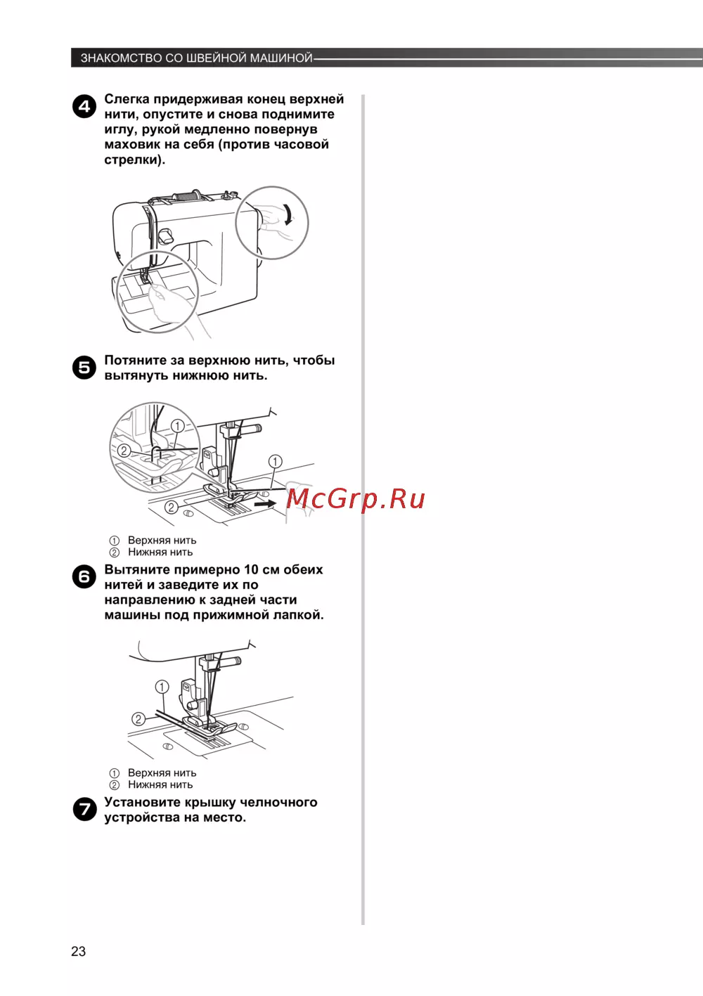 - Убедитесь что шпульный колпачок вставлен правильно так как в противном случае игла может сломаться p.45