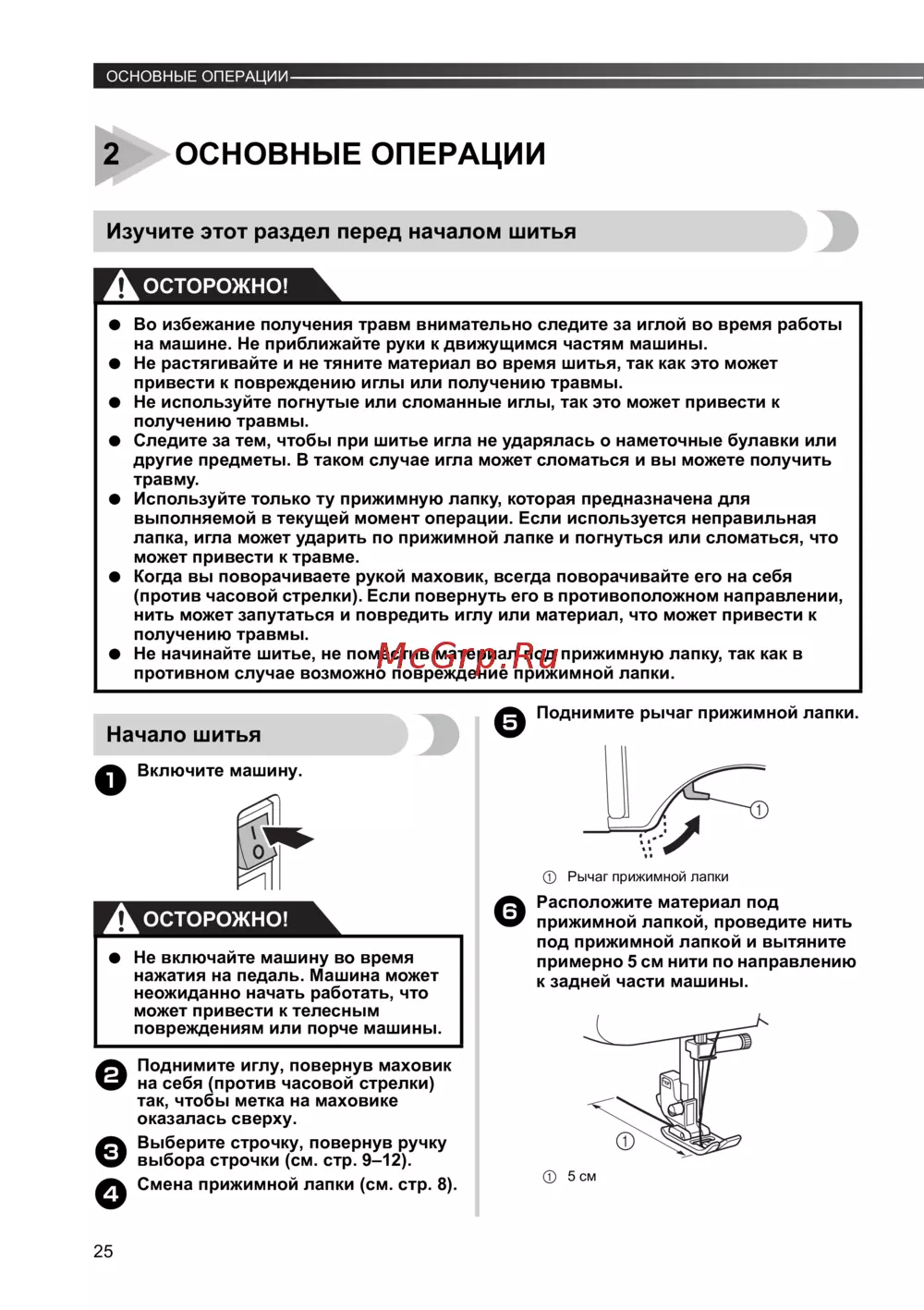 ● Во избежание получения травм внимательно следите за иглой во время работы