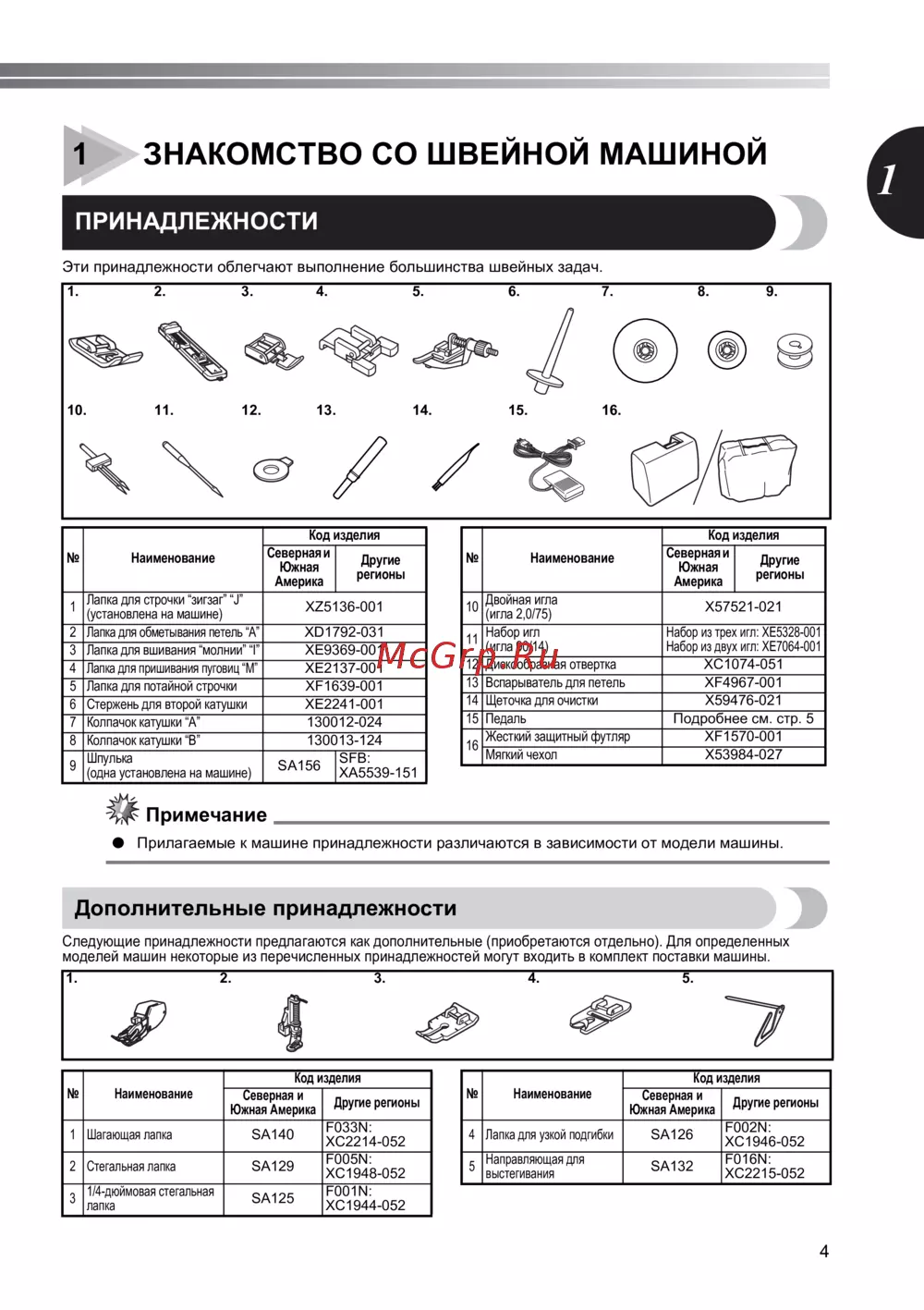 моделей машин некоторые из перечисленных принадлежностей могут входить в комплект поставки машины.