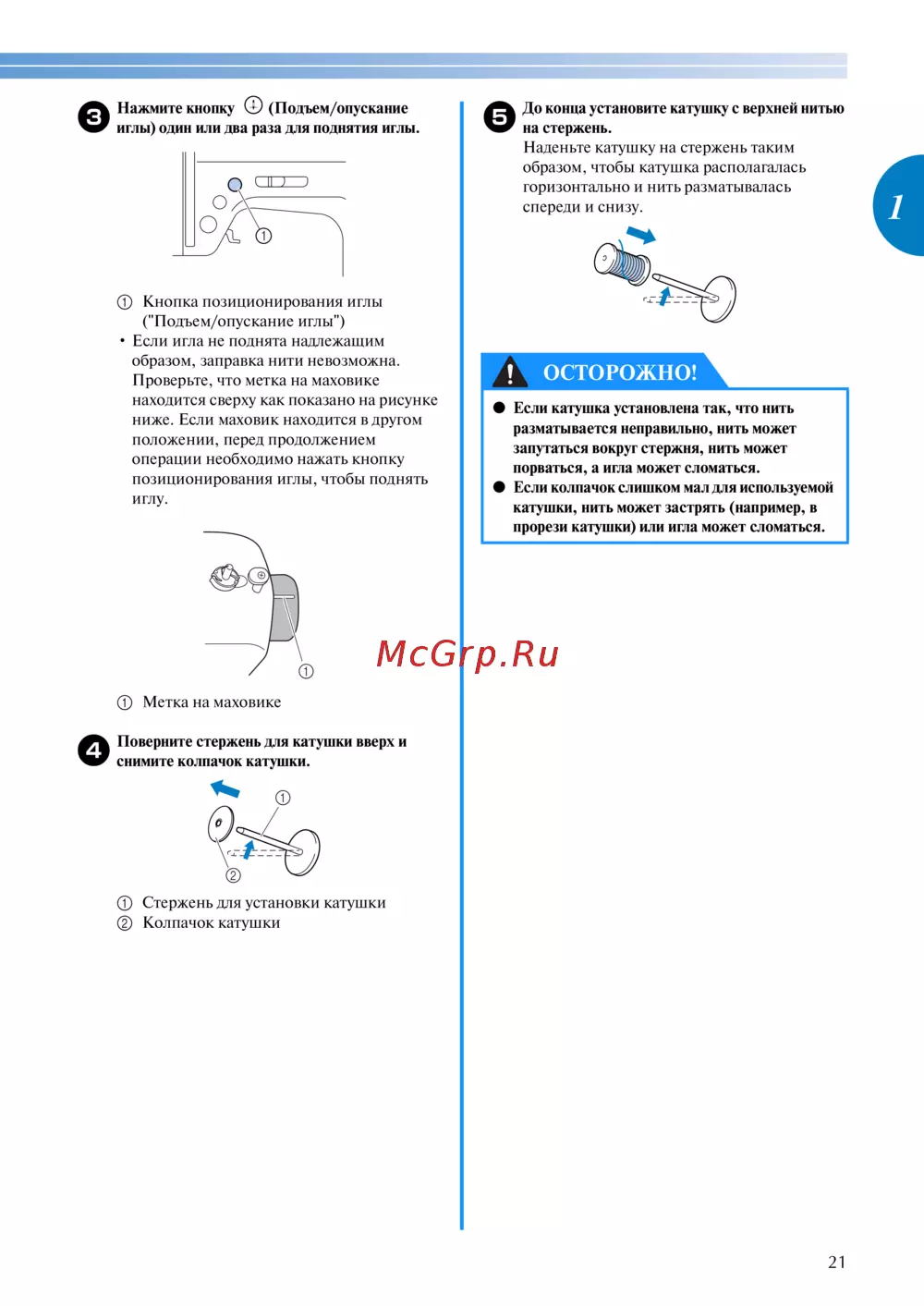 иглы) один или два раза для поднятия иглы.