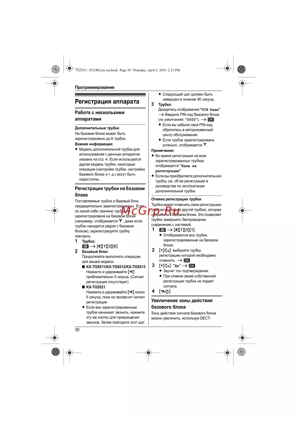 Panasonic KX-TG5511RUR — регистрация и отмена регистрации трубок на базовом блоке [30/60]