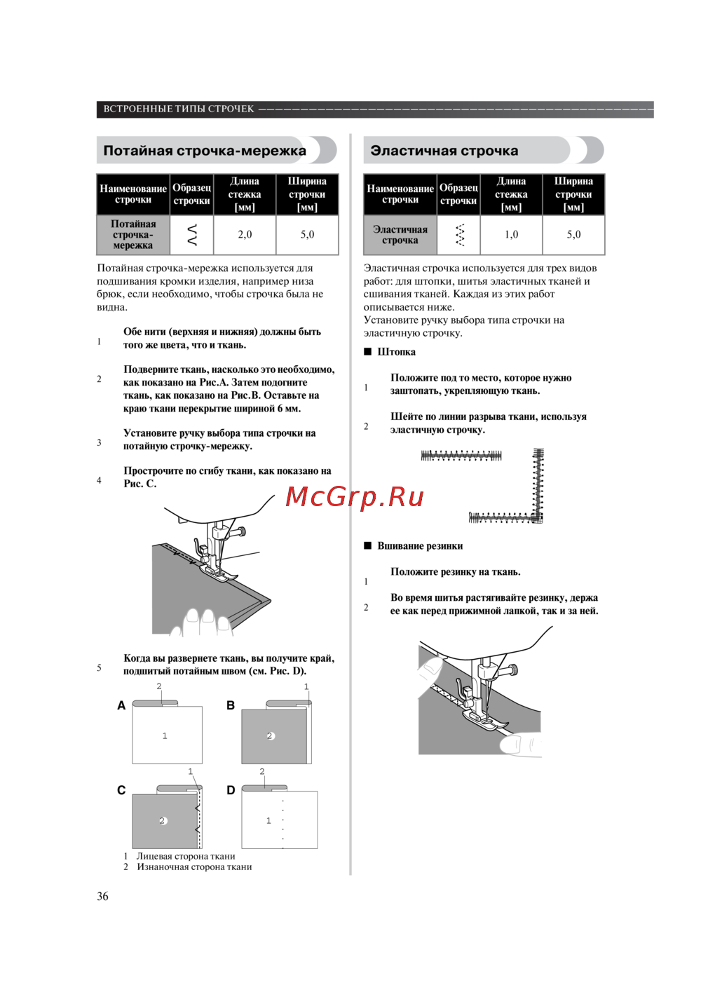 Brother RS 11 — как использовать потайную и эластичную строчку для шитья [37/63]