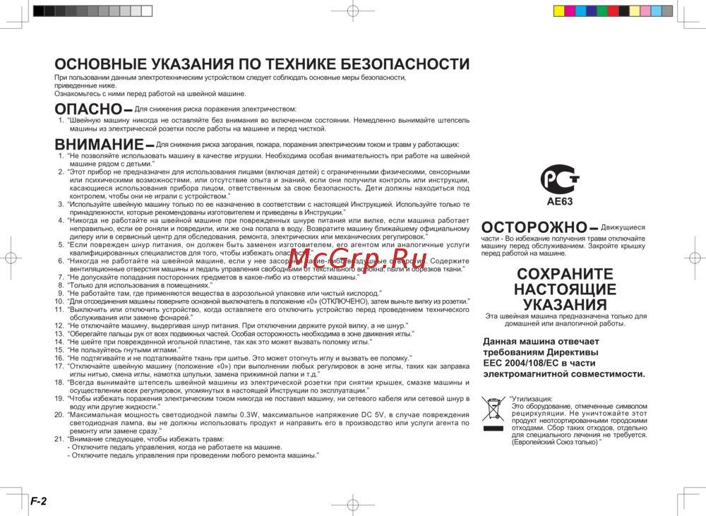 3. “ Используйте швейную машину только по ее назначению в соответствии с настоящей Инструкцией. Используйте только те