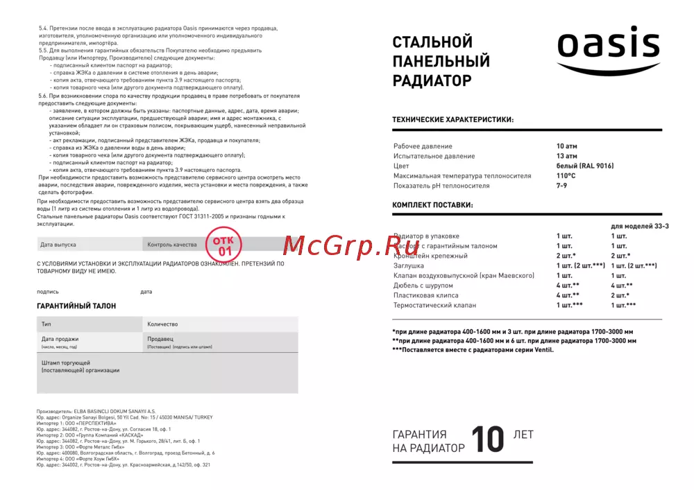 Oasis OV-33-5-10Инструкция по эксплуатации -