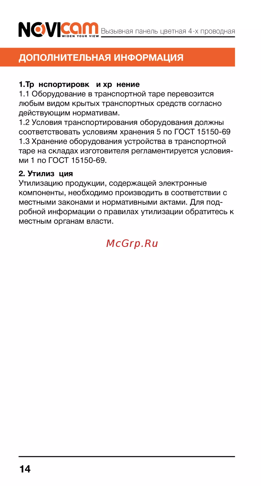 Novicam AD82 — вызывная панель: транспортировка, хранение и утилизация [14/18]
