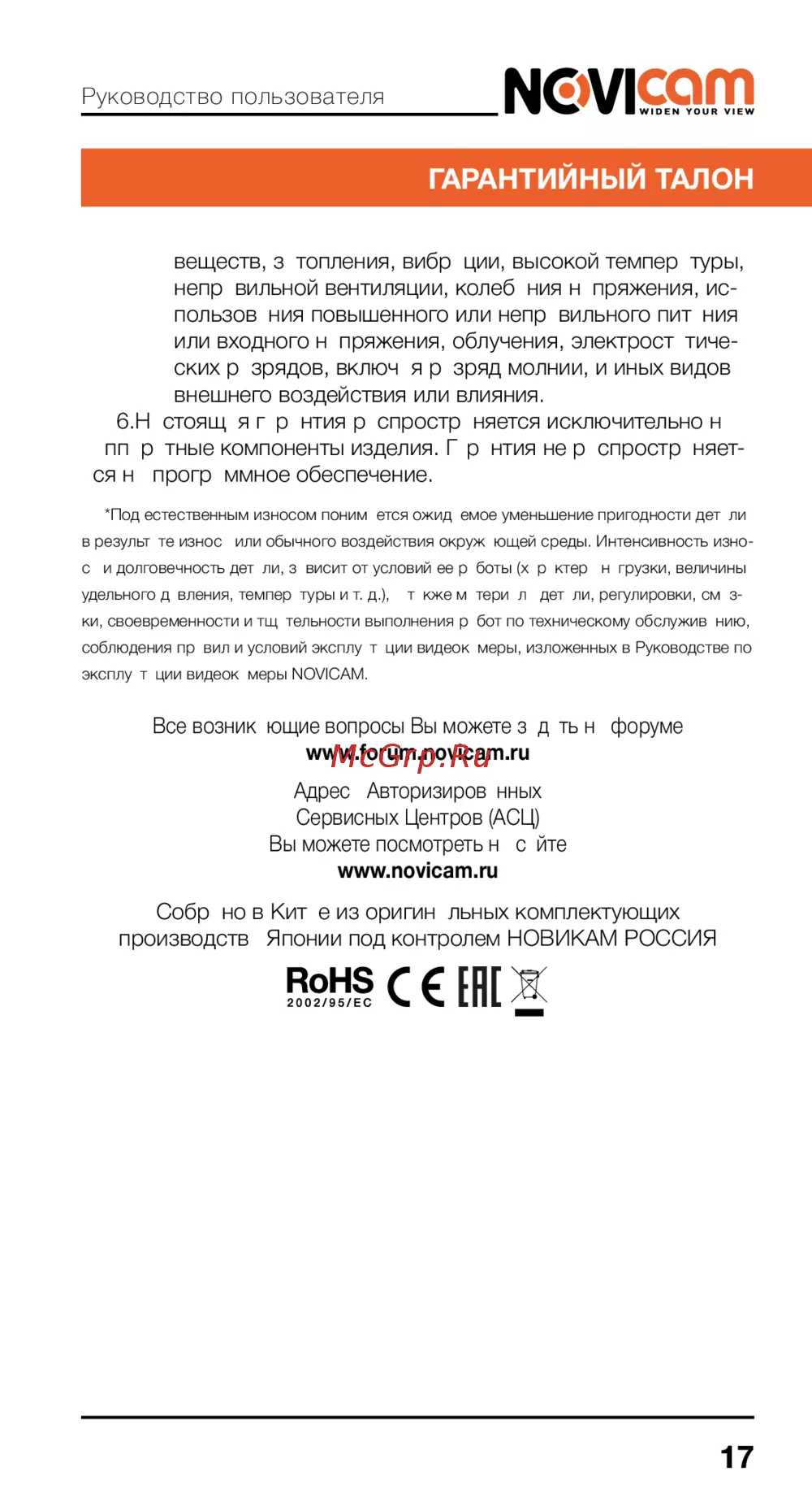 Novicam AD82 — гарантийные условия и обслуживание аппаратных компонентов [17/18]