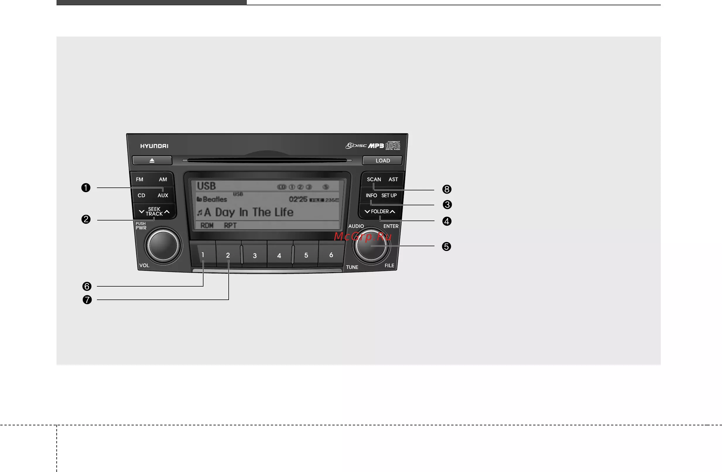 Hyundai Sonata NF (2008) — управление музыкальными файлами через USB в автомобиле [268/448]