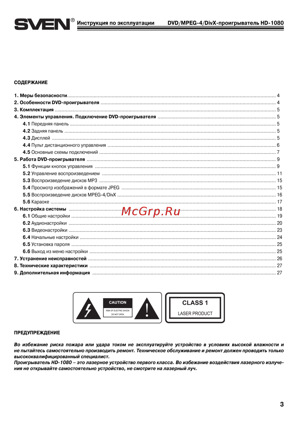 Sven HD-1080 [3/28] Инструкция по эксплуатации