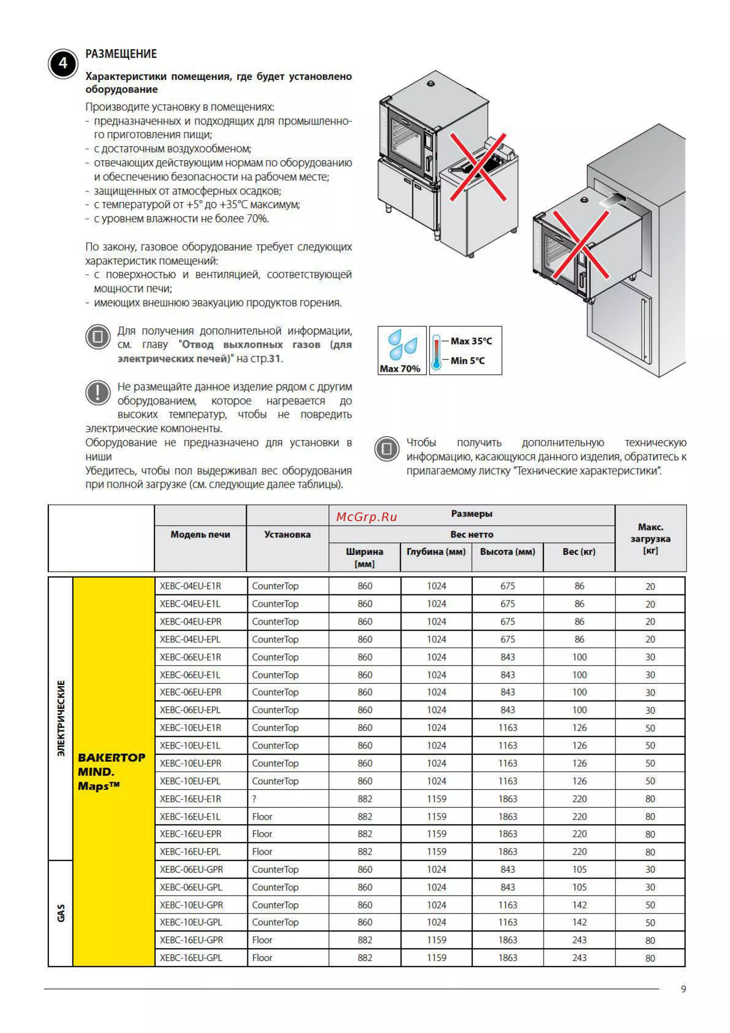 - Электрические компоненты оборудование не предназначено для установки в ниши убедитесь чтобы пол выдерживал вес оборудования при полной загрузке см следующие далее таблицы p.9