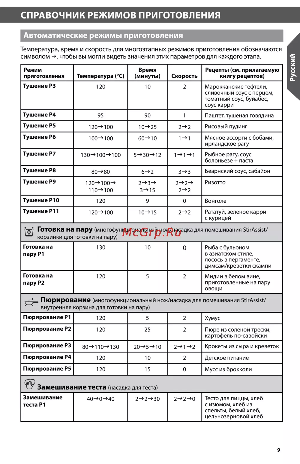 - Справочник режимов приготовления справочник режимов приготовления p.9