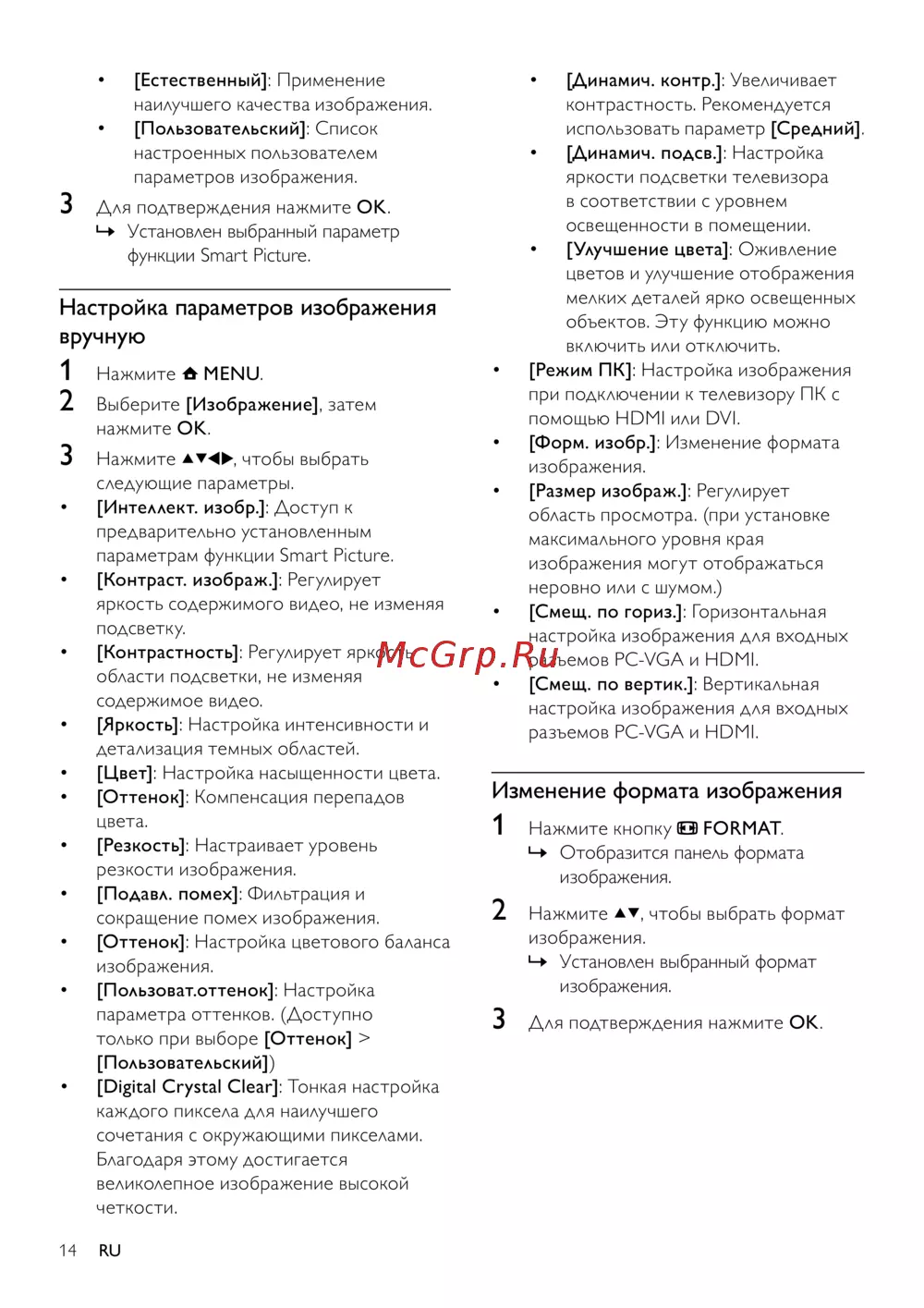 ![Philips 19 PFL 3405/60 [16/43] Настройка параметров изображения вручную](/views2/1033026/page16/bg10.png)