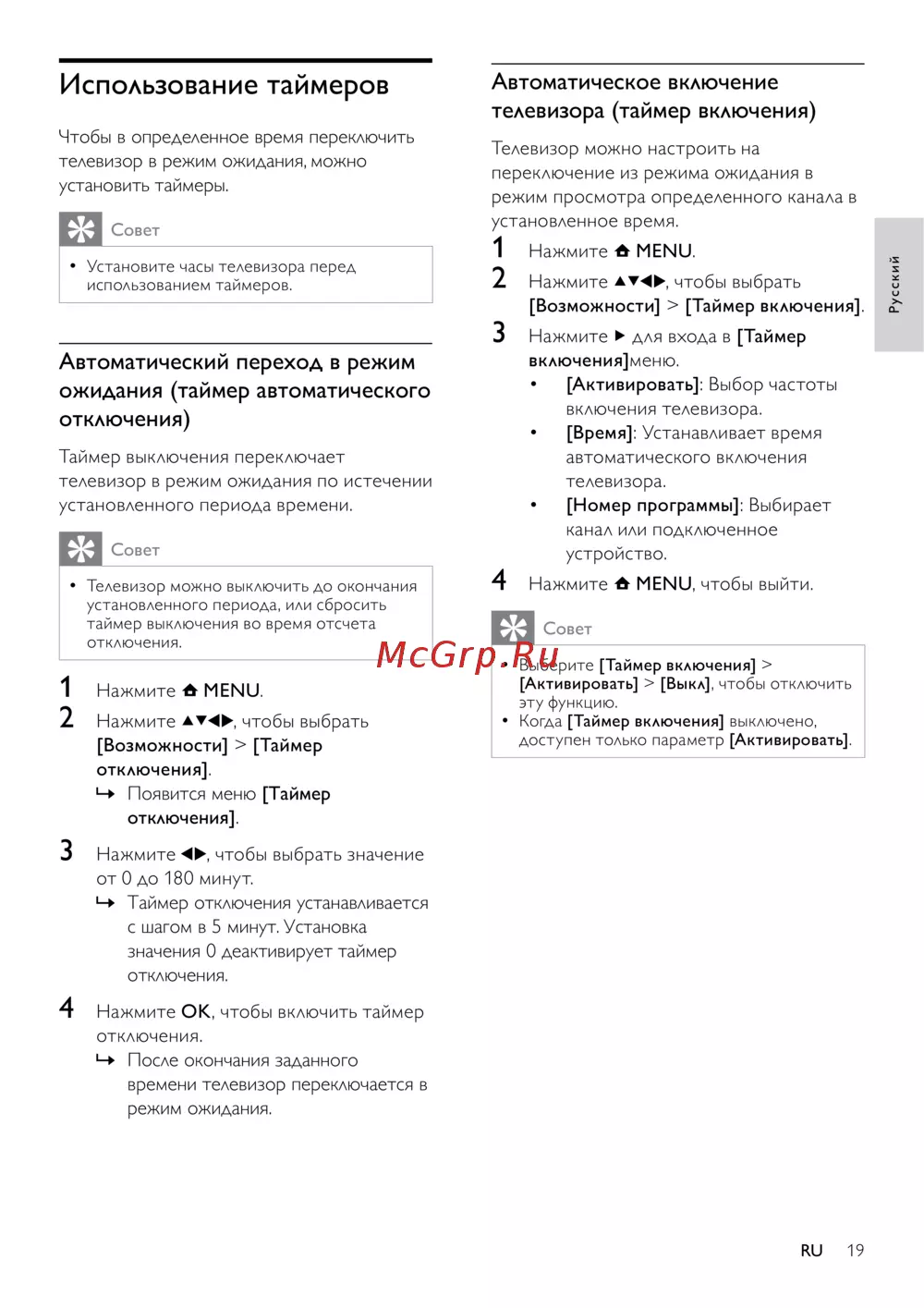 - Автоматическое включение телевизора таймер включения p.21