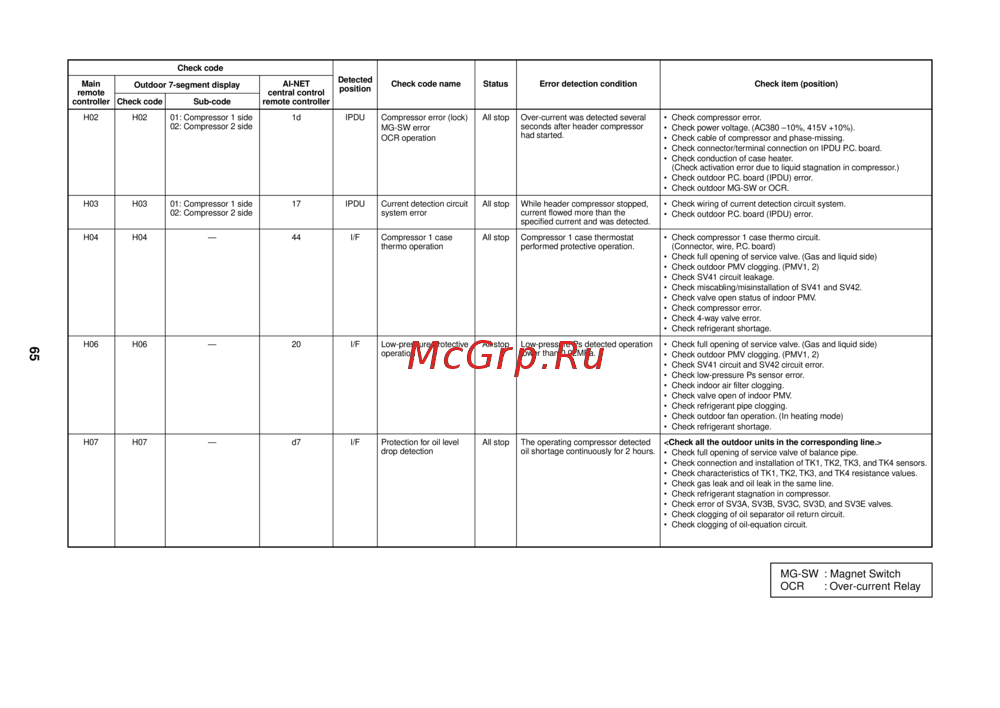 Toshiba MMK-AP0243H [65/152] Mg sw magnet switch ocr over current relay