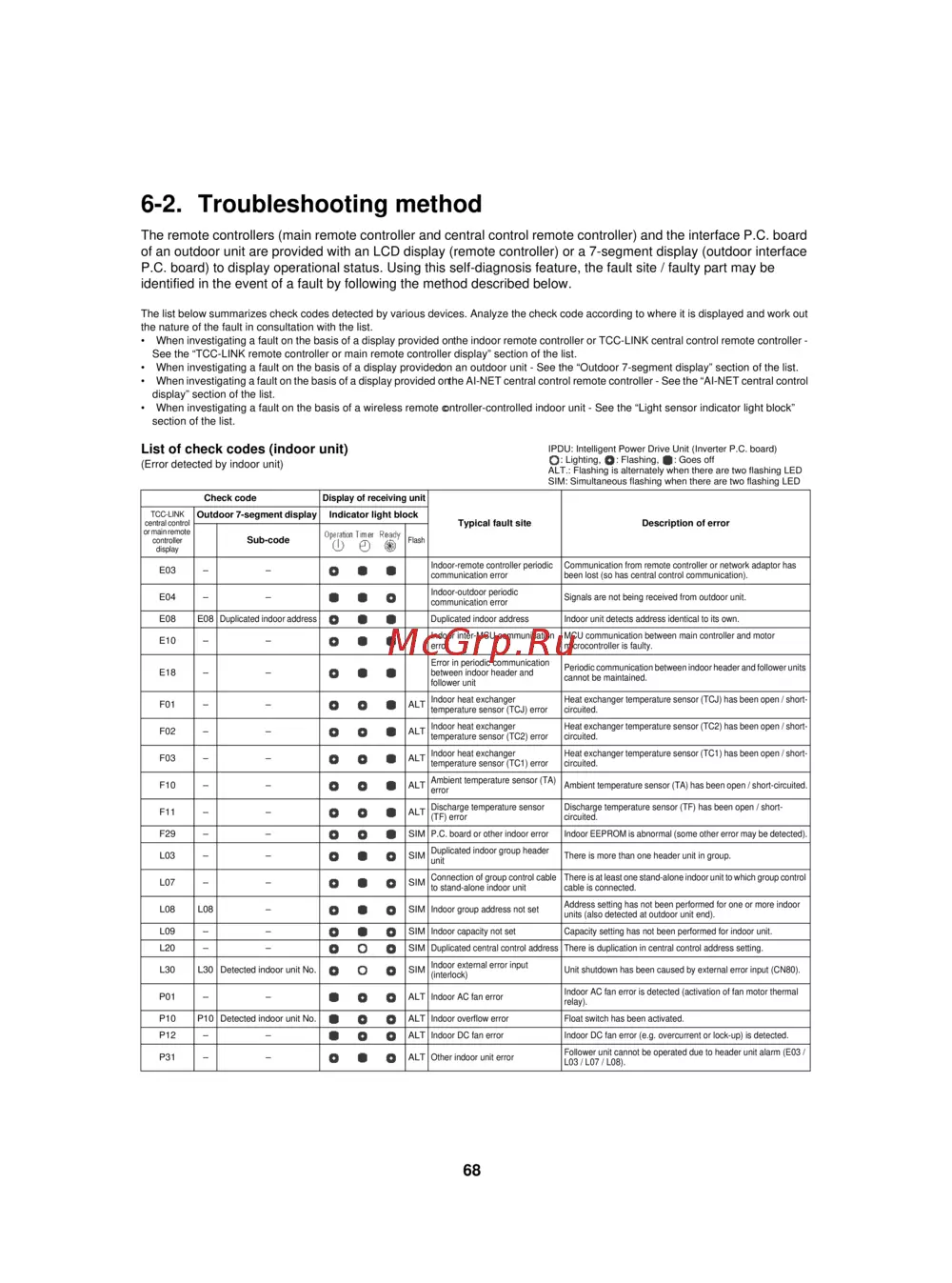 • When investigating a fault on the basis of a display provided on the indoor remote controller or TCC-LINK central control remote controller -
