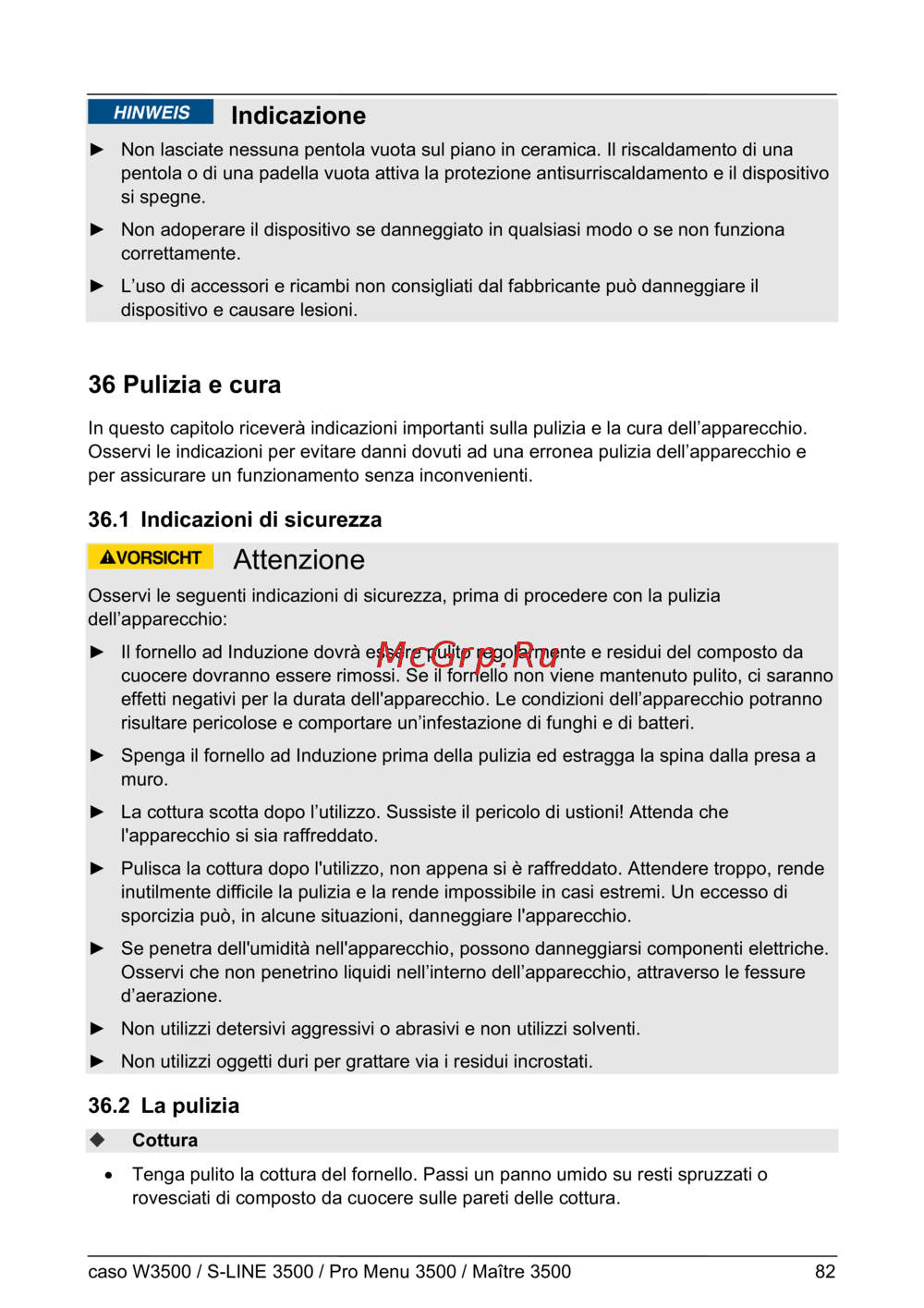 caso W3500 / S-LINE 3500 / Pro Menu 3500 / Maître 3500 82