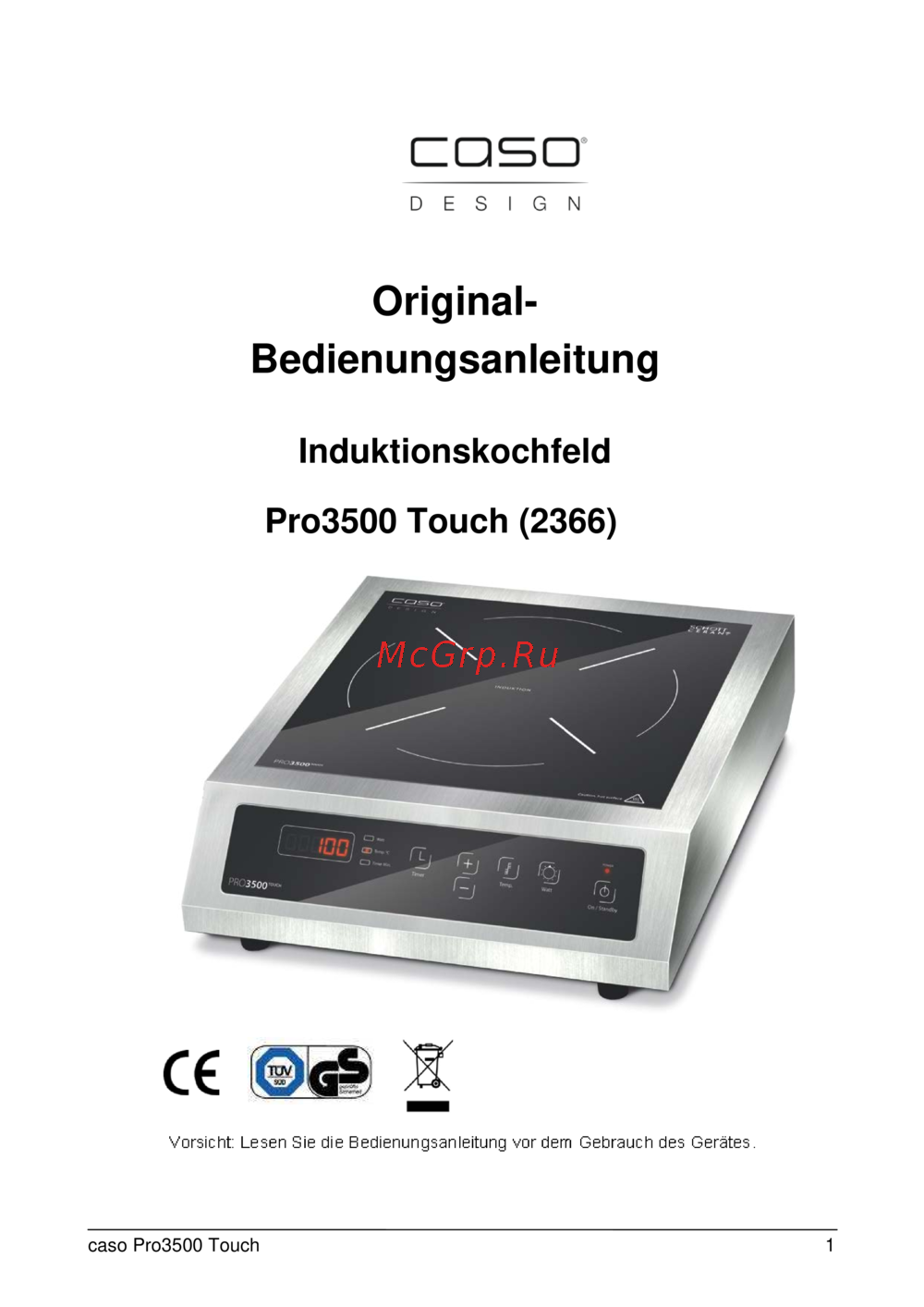 Caso Pro Gourmet 3500Инструкция по эксплуатации -