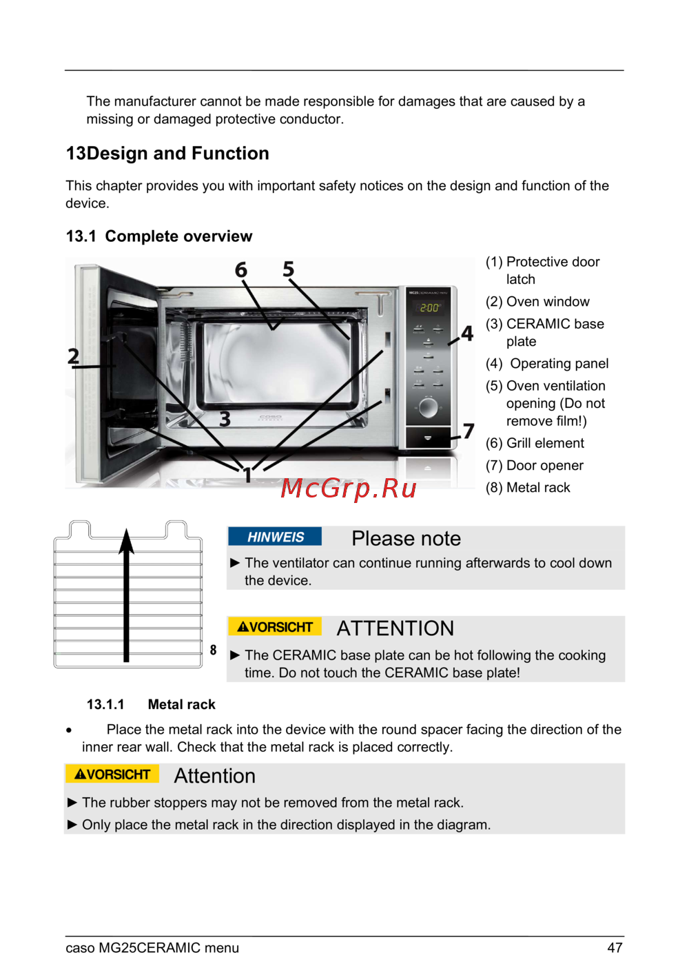 Caso MG25 Ceramic menu — важные советы по безопасности и эксплуатации устройства [47/162]