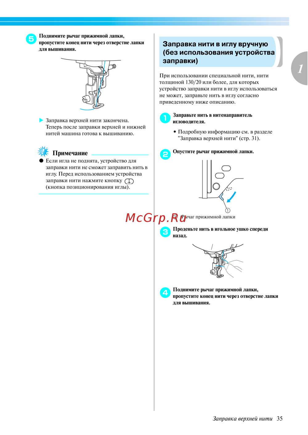 - Не бейте по игле пальцами или пяльцами это может привести к травме или поломке иглы p.50